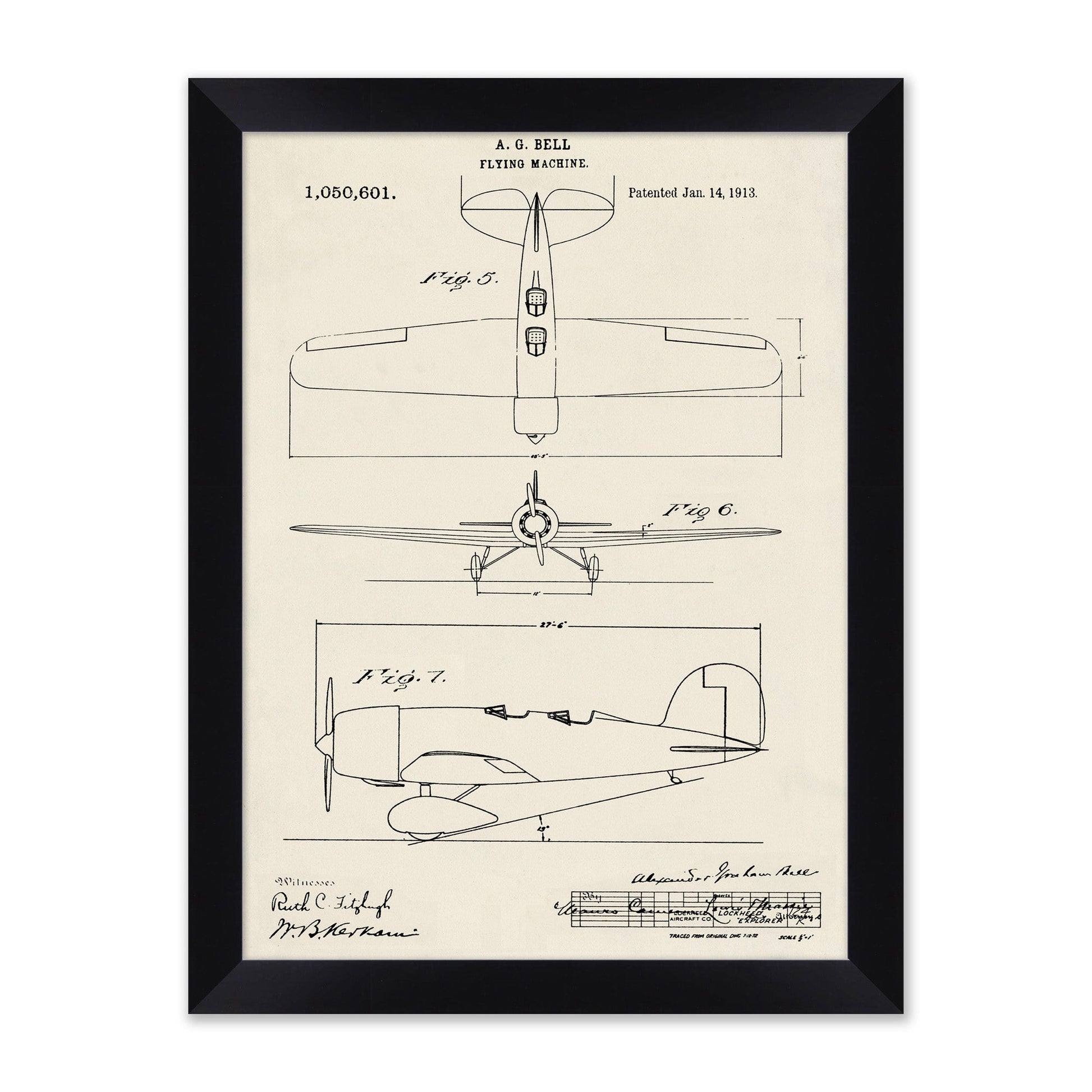 Whimsical and inspiring, these simple schematics of an early airplane prototype from inventor Alexander Graham Bell are ideal for any budding aviation enthusiast or innovator. A classic black frame ensures versatility.