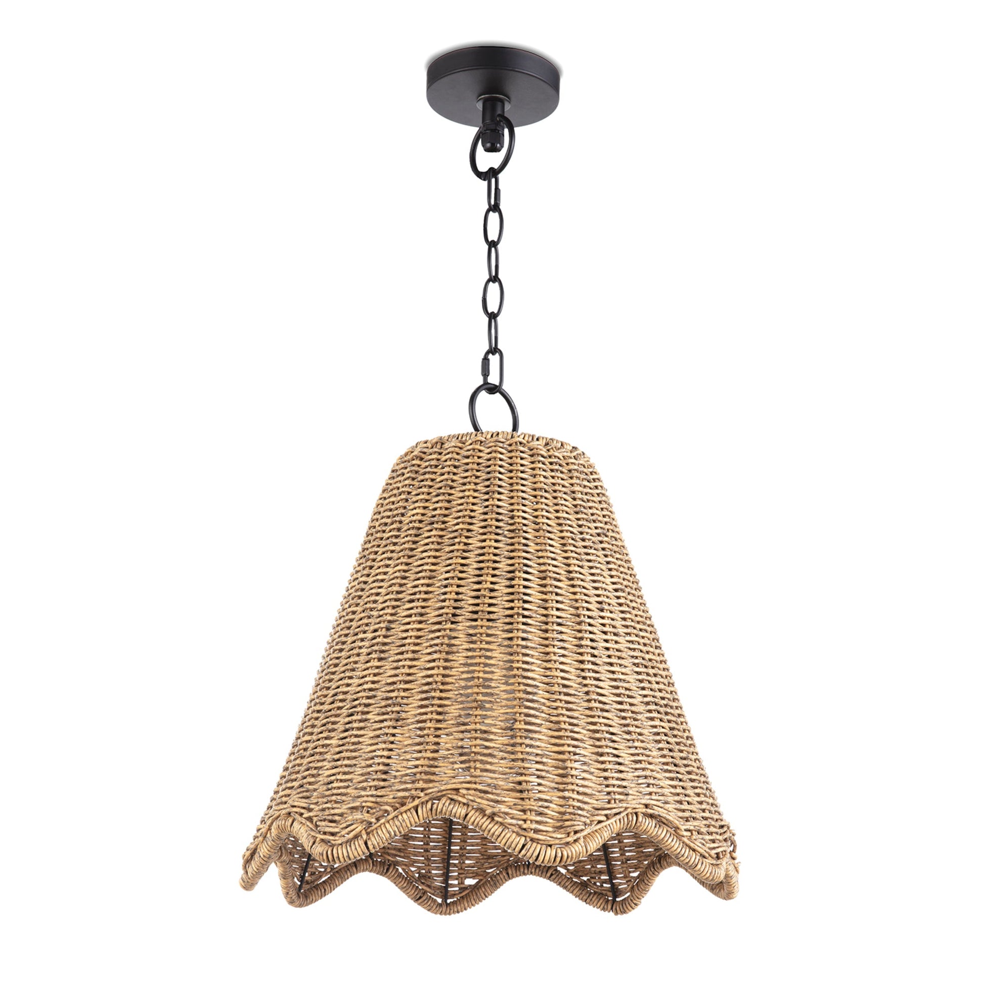 When you think of spring and summertime you envision warmth, having fun in the sun, and waiting for the golden hour. The Annabeth Pendant brings all of the best parts of the season to the exterior of your home. Rattan-like material woven into a wavelike pattern allows warm light to peek through and add a pleasant glow to your outdoor oasis. This stunning pendant is constructed with the best quality materials to live amongst the elements while providing a signature, designer style. Available in two sizes.