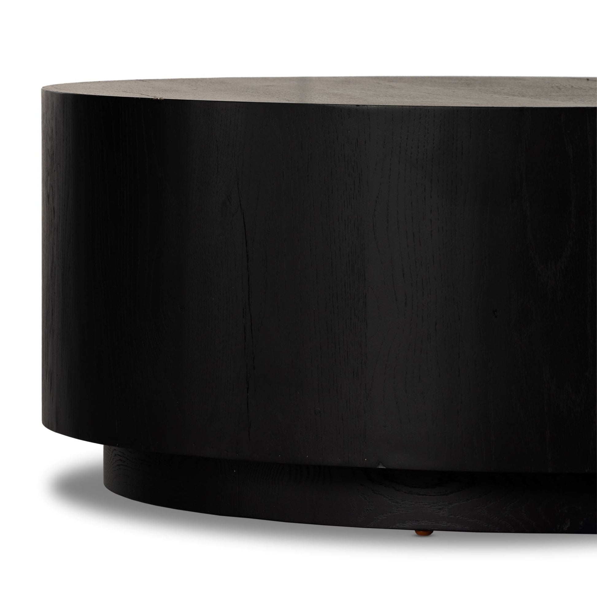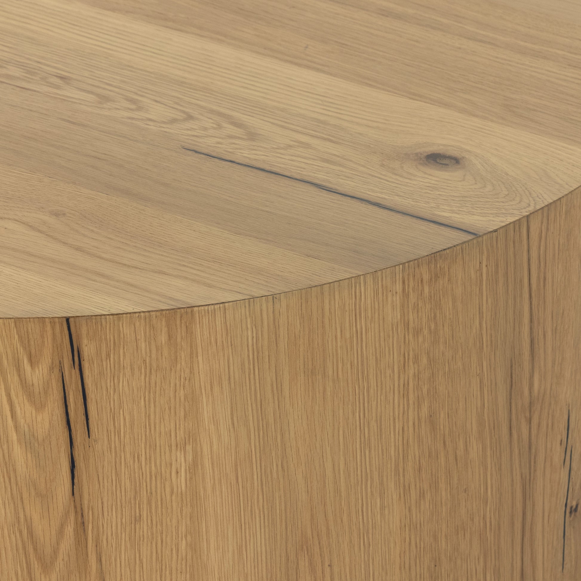 Exclusive to Magnolia, this cylindrical coffee table features a thick oak veneer with light oak resin to highlight the wood’s organic graining to dramatic effect.