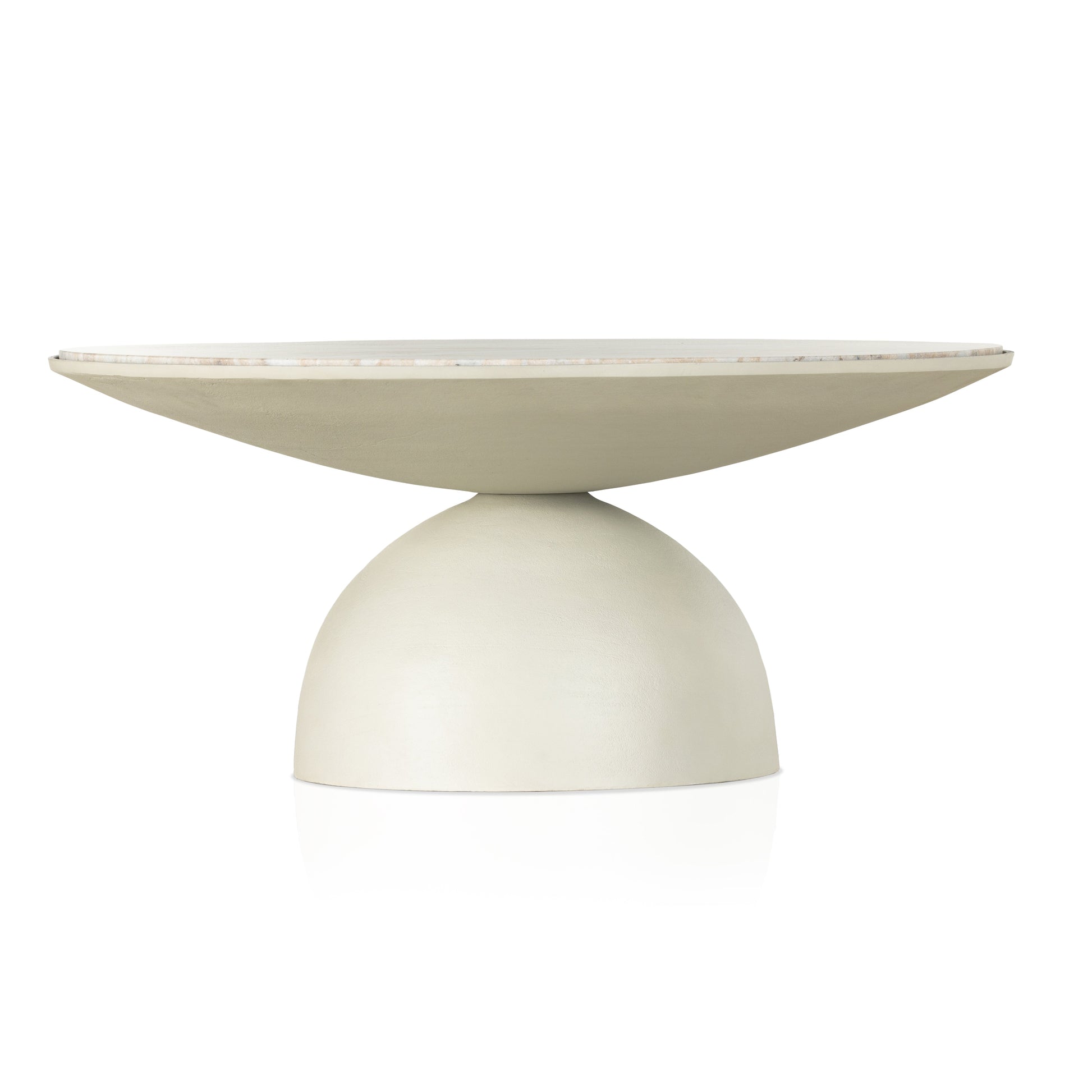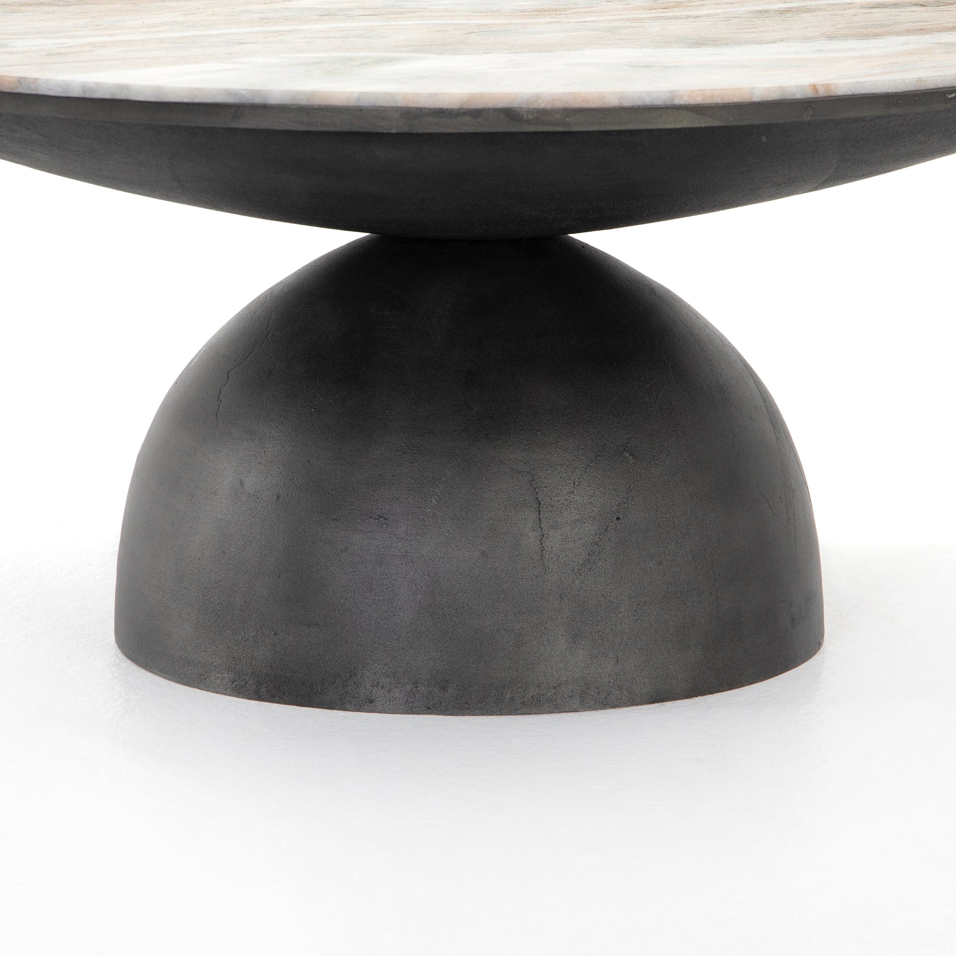 Introduce sculptural drama to your living space with the shapely addition of the August Coffee Table. Featuring an aluminum base and a rounded tabletop of dreamy marble rich with natural veining, this modern industrial table is a conversation-starter.