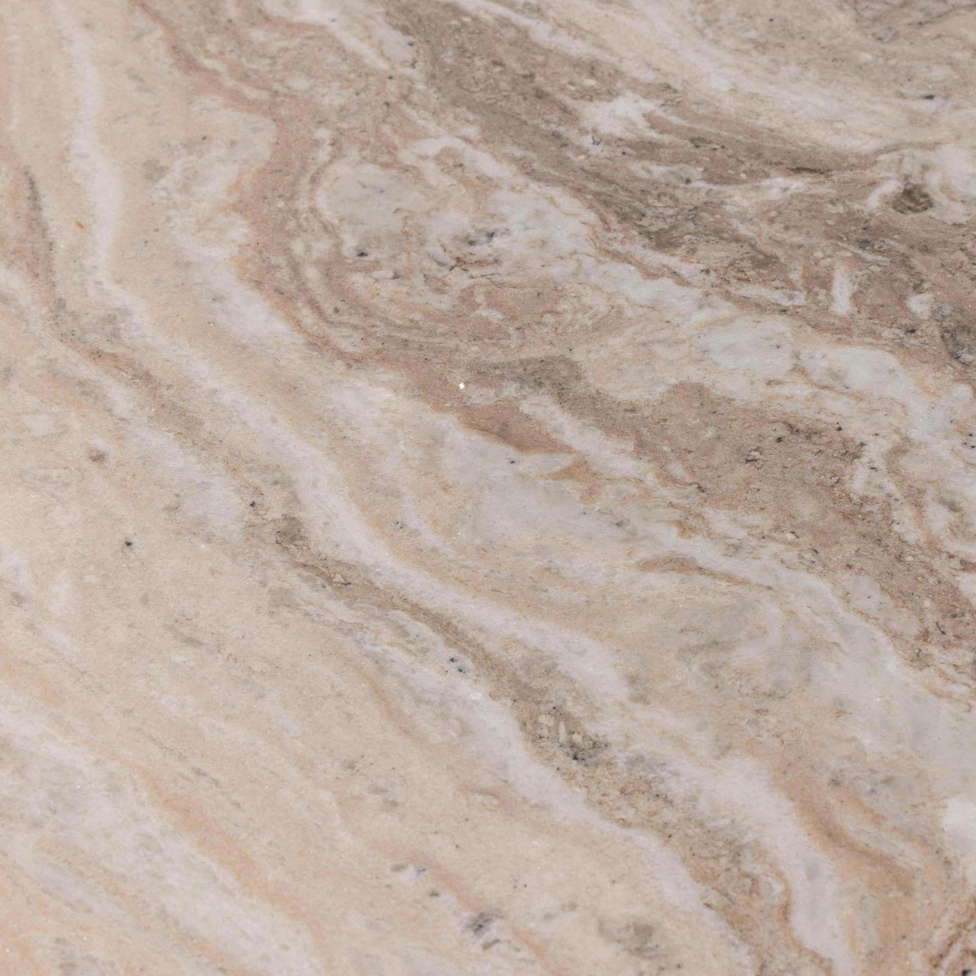 Introduce sculptural drama to your living space with the August Large Coffee Table. Featuring a hammered grey-finished aluminum base and a rounded tabletop of taupe marble rich with veining, this large-scale industrial table makes a statement.