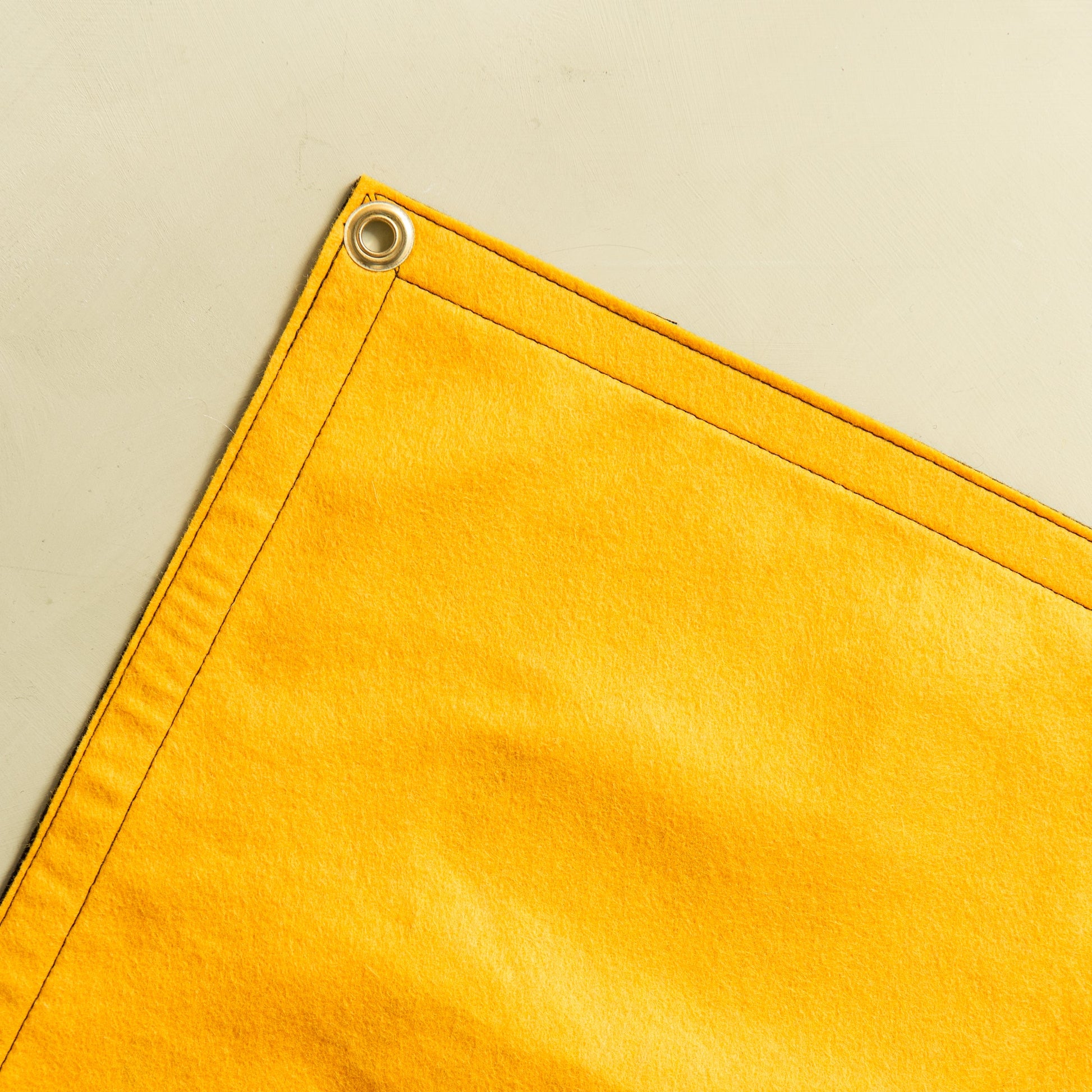 Encourage yourself when things feel risky with the Babe Ruth Camp Flag. Handmade in the USA, this high-quality wool felt flag features black lettering and a black border on a bright yellow background, and a quote from The Great Bambino reading, “Never let the fear of striking out keep you from playing the game.” Four metal grommets allow for easy hanging.