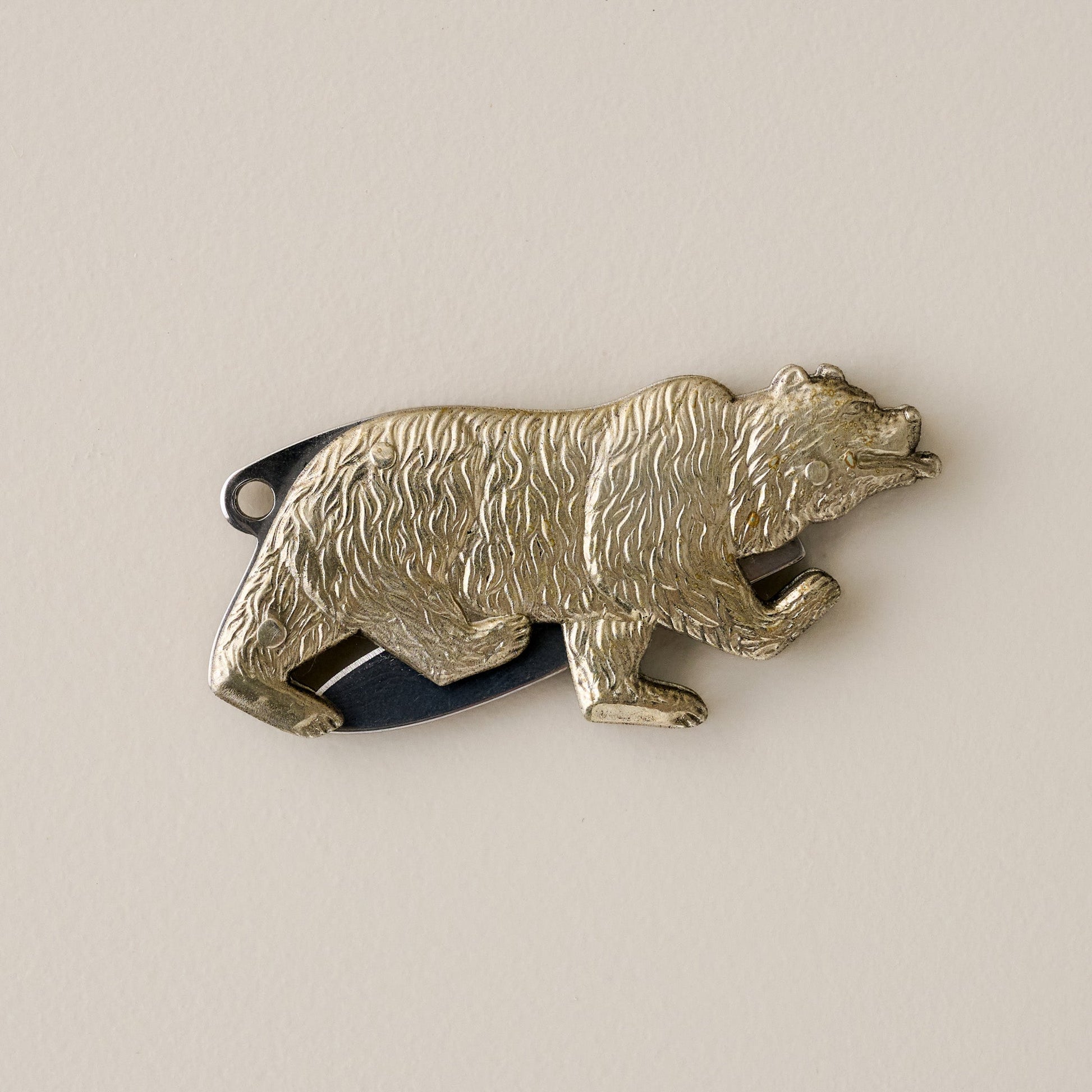 Merging the spirit of the outdoors with everyday utility, the Bear Knife is crafted from solid nickel and stainless steel and finished in a classic brass hue. Its silhouette, inspired by a familiar forest dweller, features a smooth open-and-close mechanism, making it as functional as it is distinctive.