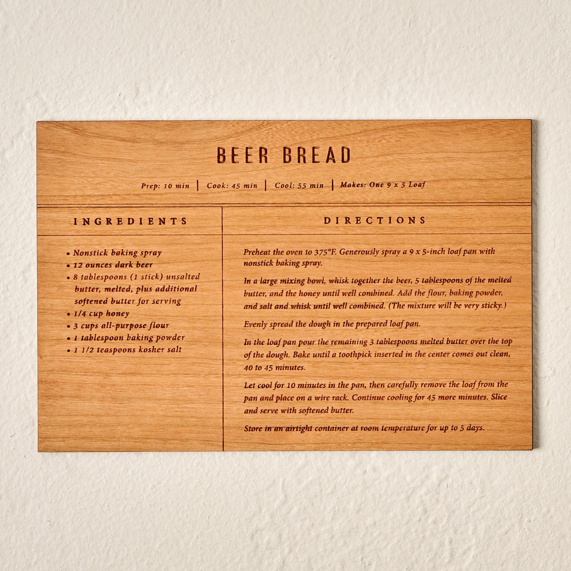 Add a touch of whimsy to your kitchen with our Beer Bread Wooden Recipe Card. This handy card features an easy-to-follow recipe for making delicious bread at home.