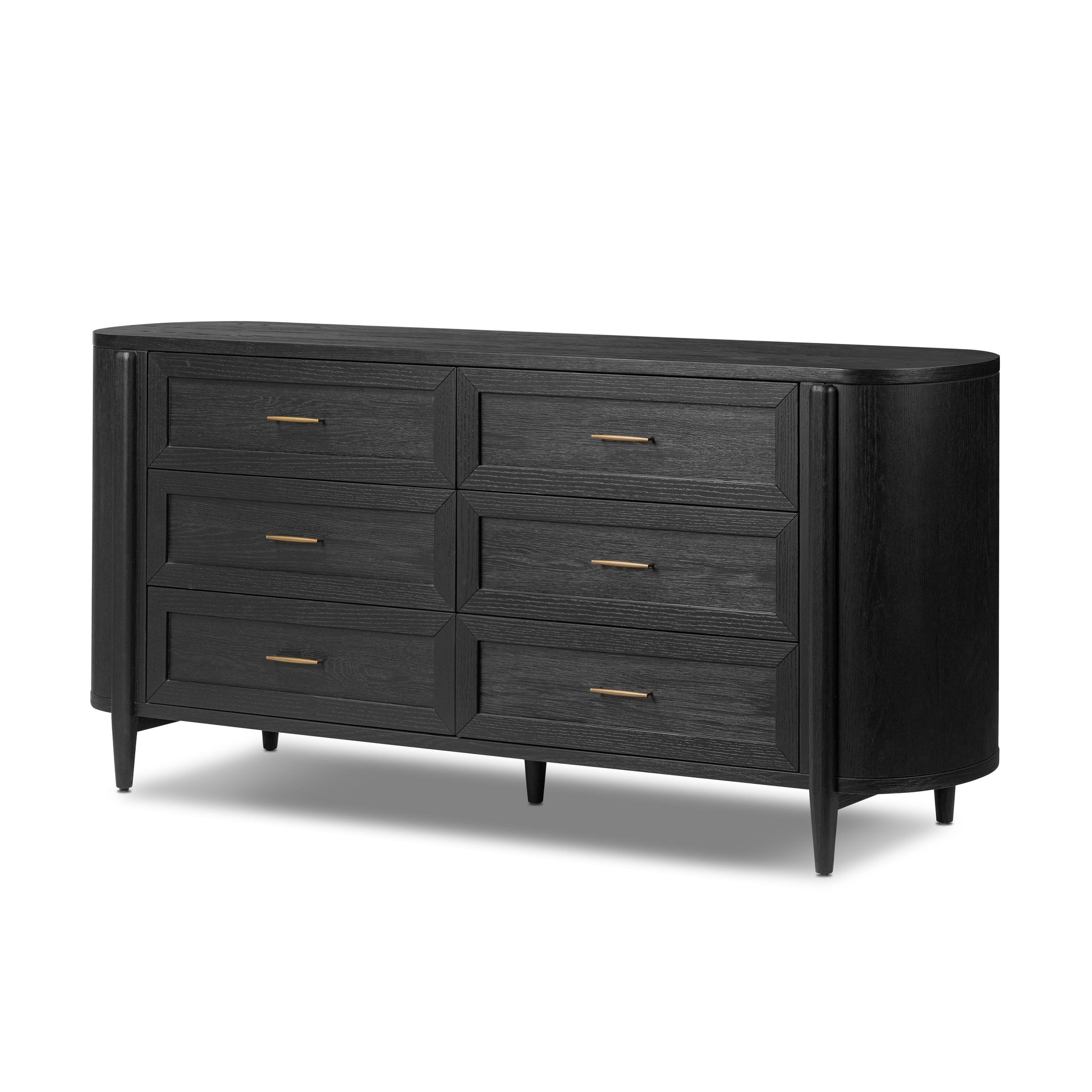 Infuse your collection with timeless midcentury design. Crafted from oak and parawood, the Belmont 6 Drawer Dresser is finished in a matte black, with simple brass hardware.