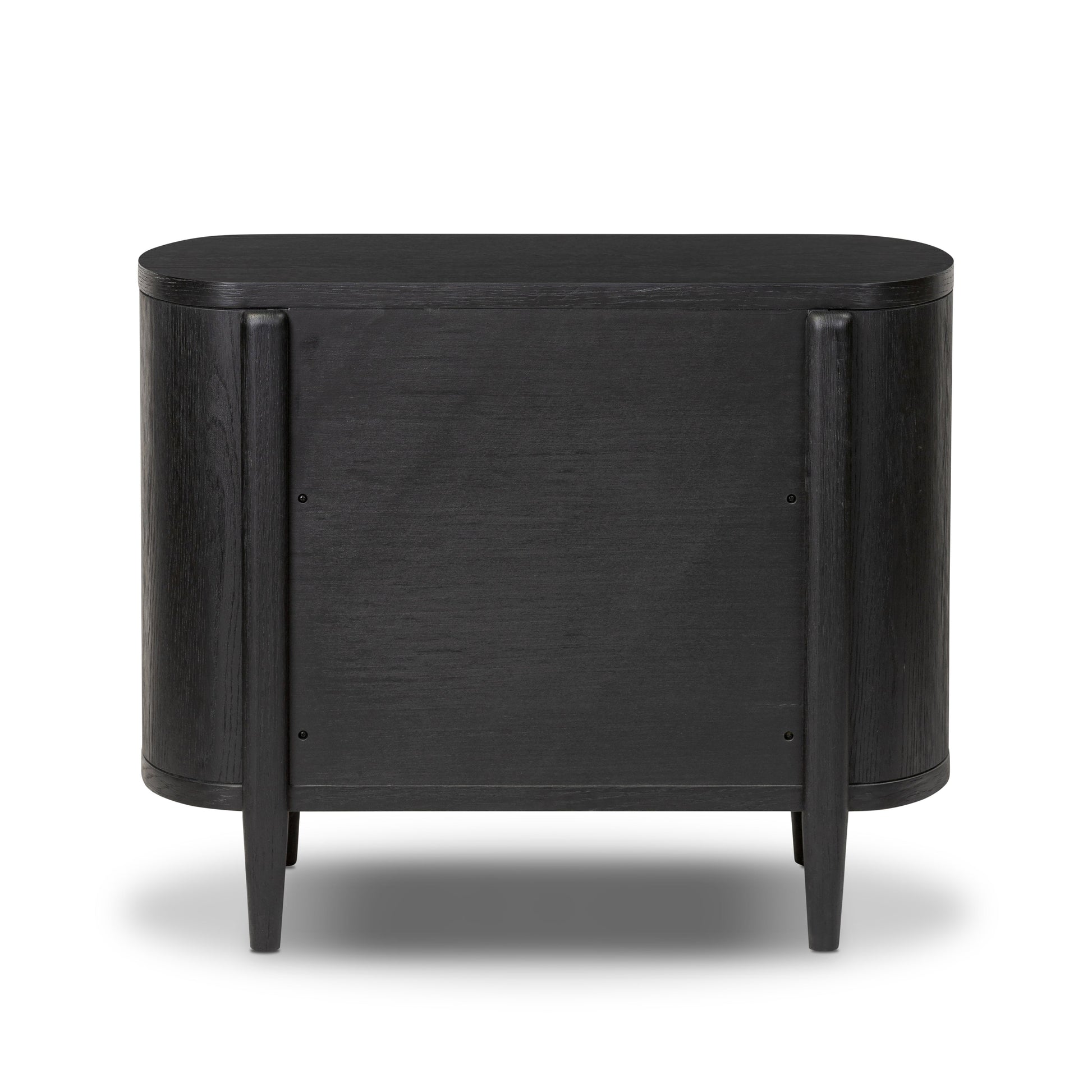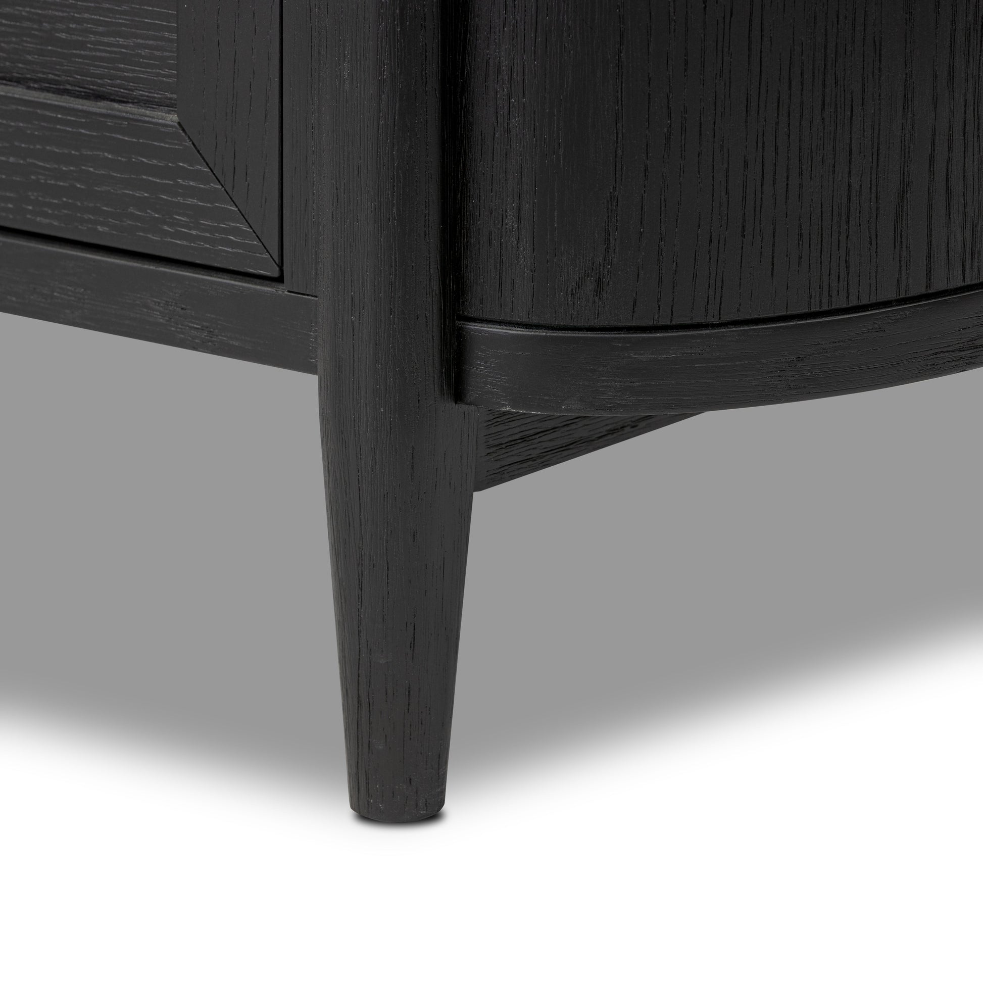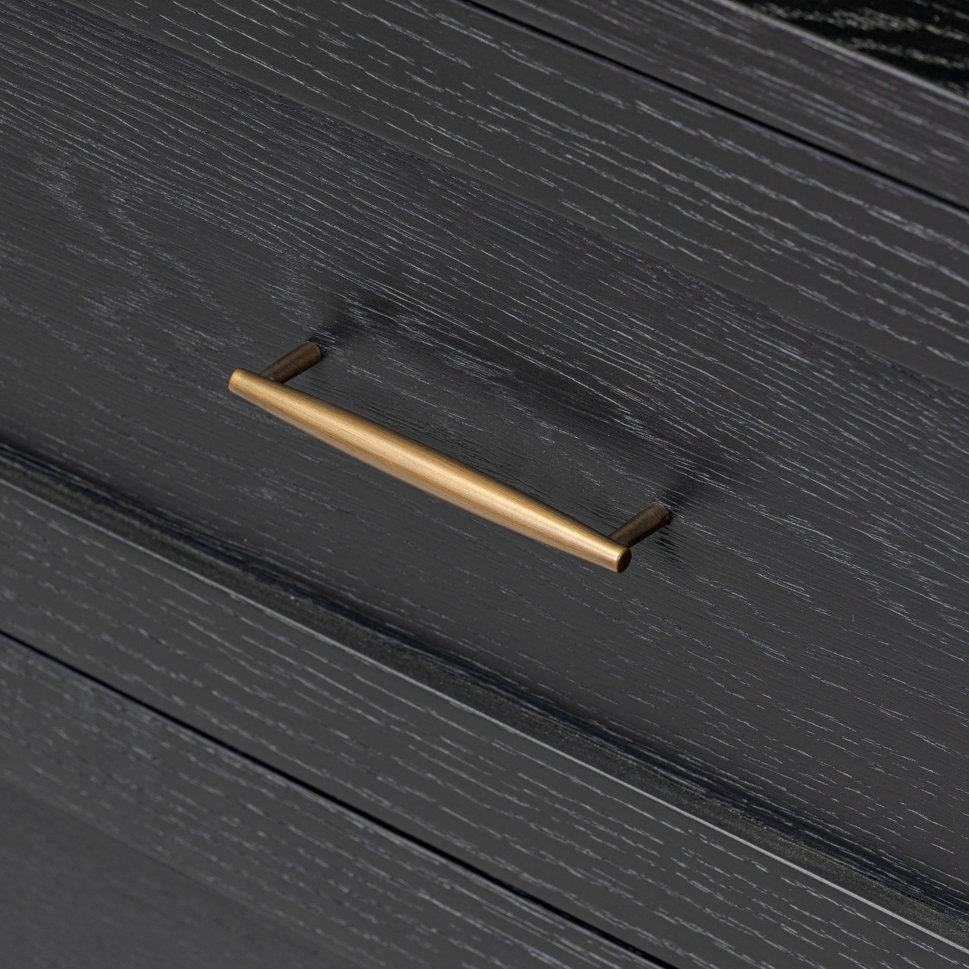Infuse your collection with timeless midcentury design. Crafted from oak and parawood, The Belmont Nightstand is finished in a matte black, with simple brass hardware.