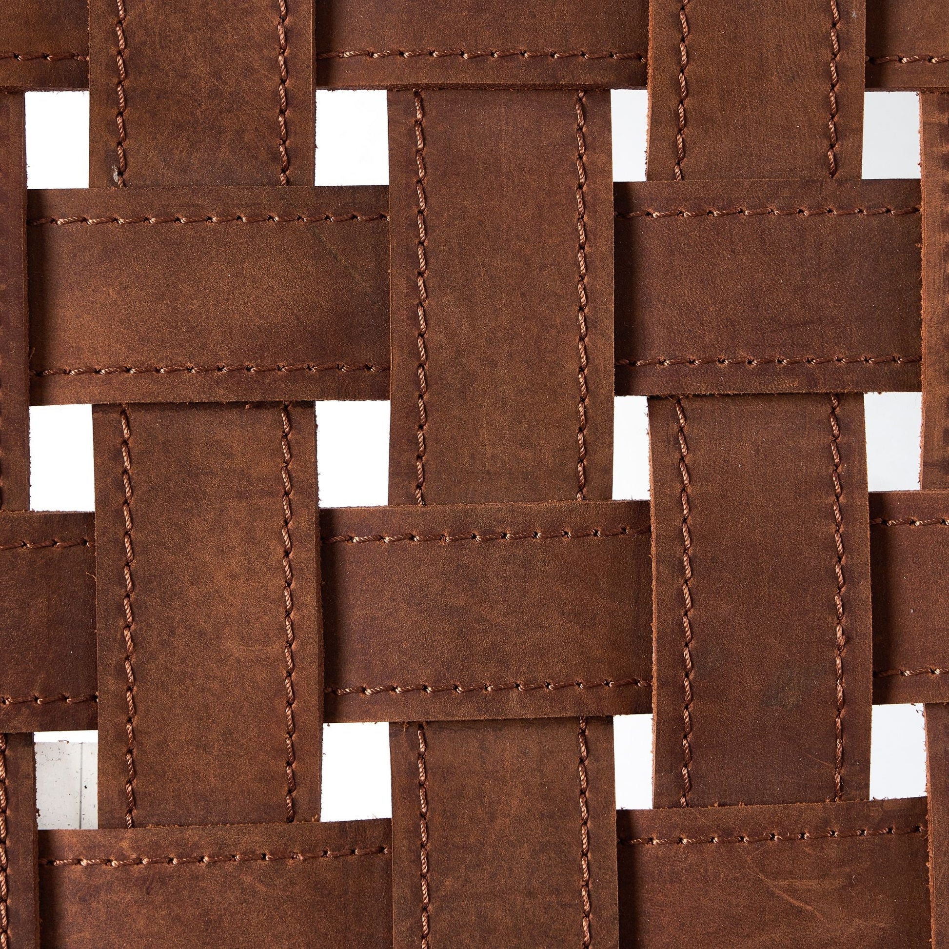 Reviving a vintage-inspired frame, this leather sling chair meets retro character with laid-back comfort. The tan leather sling back, shaped like a shield, adds bold style, while the woven seat provides a supportive, unique seating experience. Crafted from an ash wood frame with dowel construction, the chair's arms create a subtle peekaboo effect with the leather. The thick saddle leather, expertly tanned, brings warmth and a found, aged look.