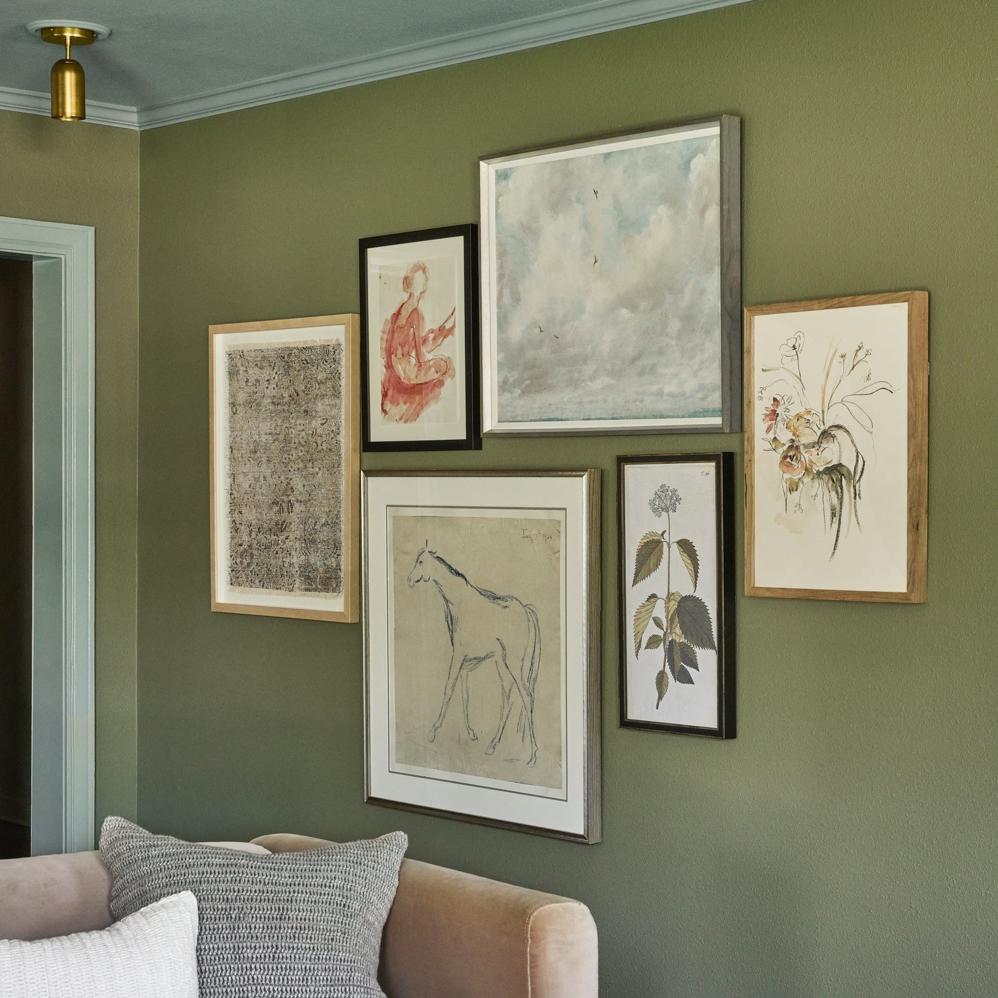 A soft color palette and mix of distressed and traditional-inspired motifs make this textile wall art a timeless and versatile addition to any space. The simple mat and light wood frame keep the spotlight on this piece’s delicate intricacy.