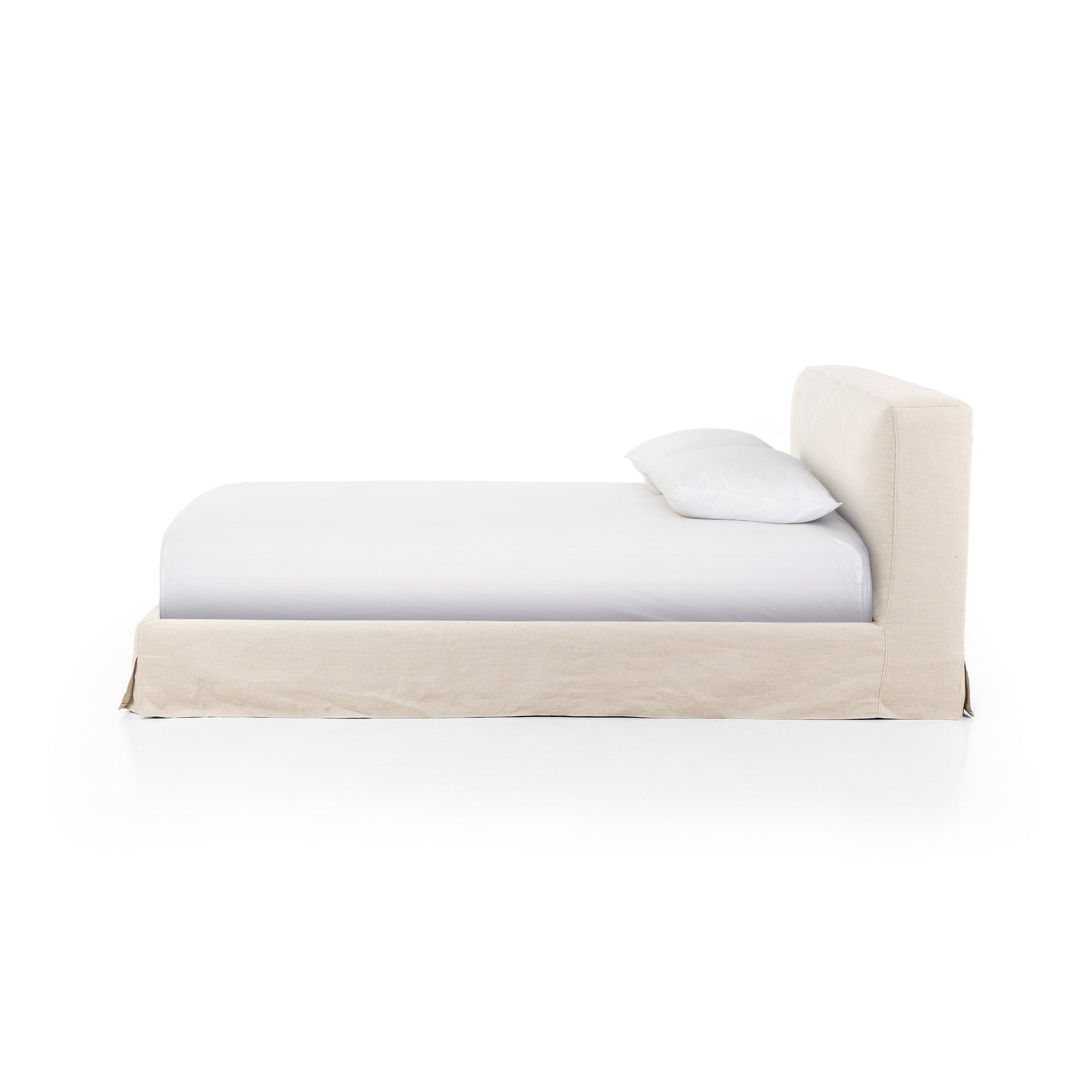 Crafted for comfort. A low, slipcovered bed features luxurious and sustainably made Belgian linen. Durable and soft to the touch, Libeco-sourced linens and linen blends are artisan-made without toxic chemicals. Slipcovered styles are fully removable and machine-washable for easy care. Available in both queen and king sizes, and two beautiful hues.