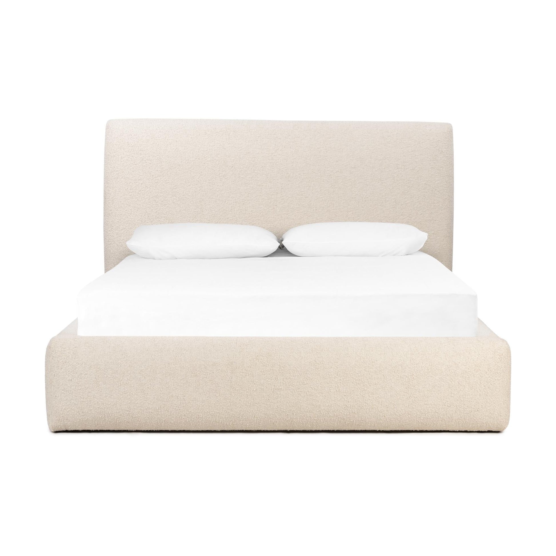 A modern, clean shape meets optimal comfort with the Darcy Bed. Featuring a padded frame upholstered in boucle-like fabric, this bed lends soft-to-the-touch texture to day’s end while grounding the room with ease.