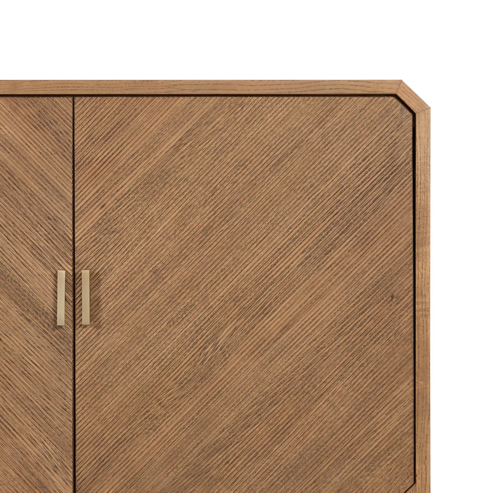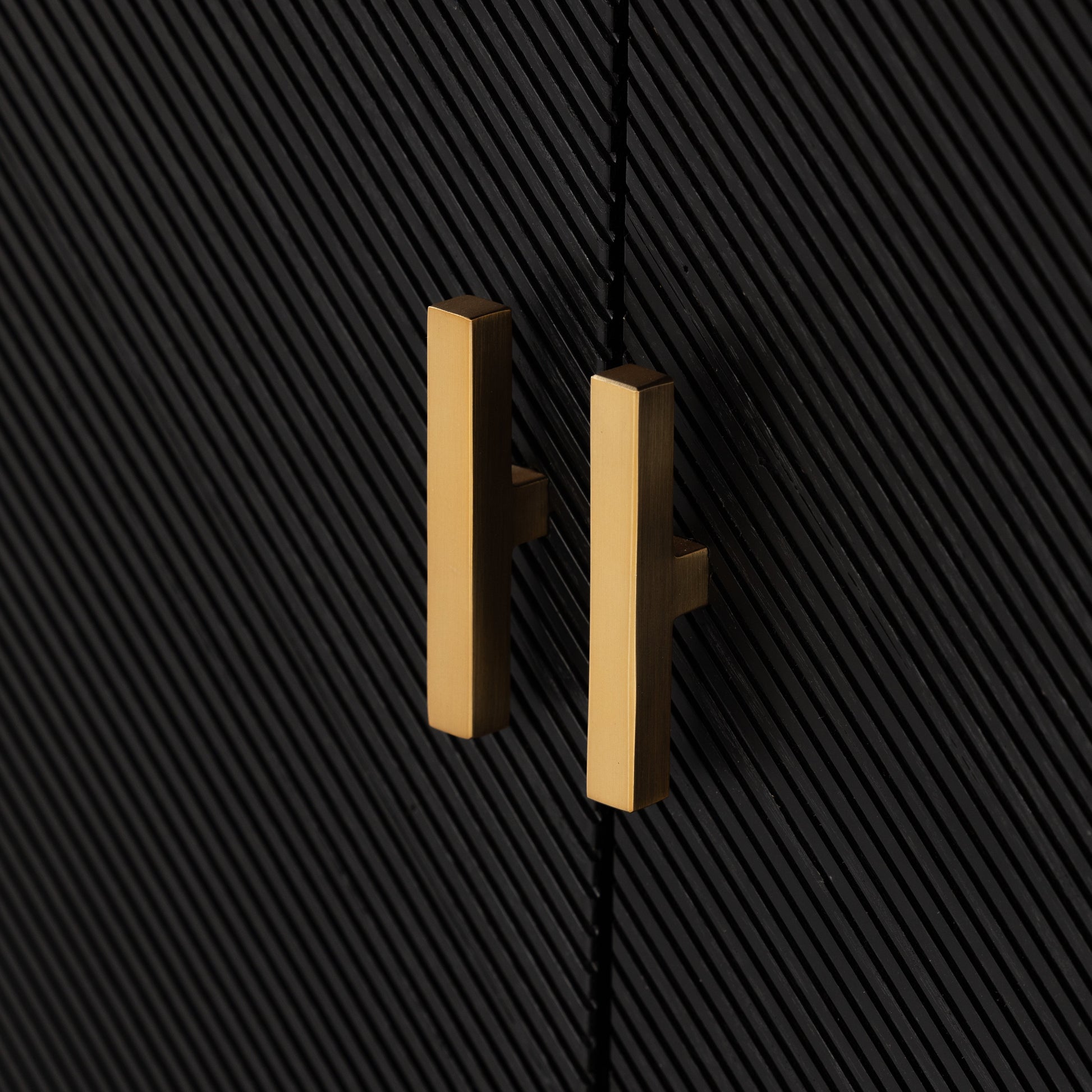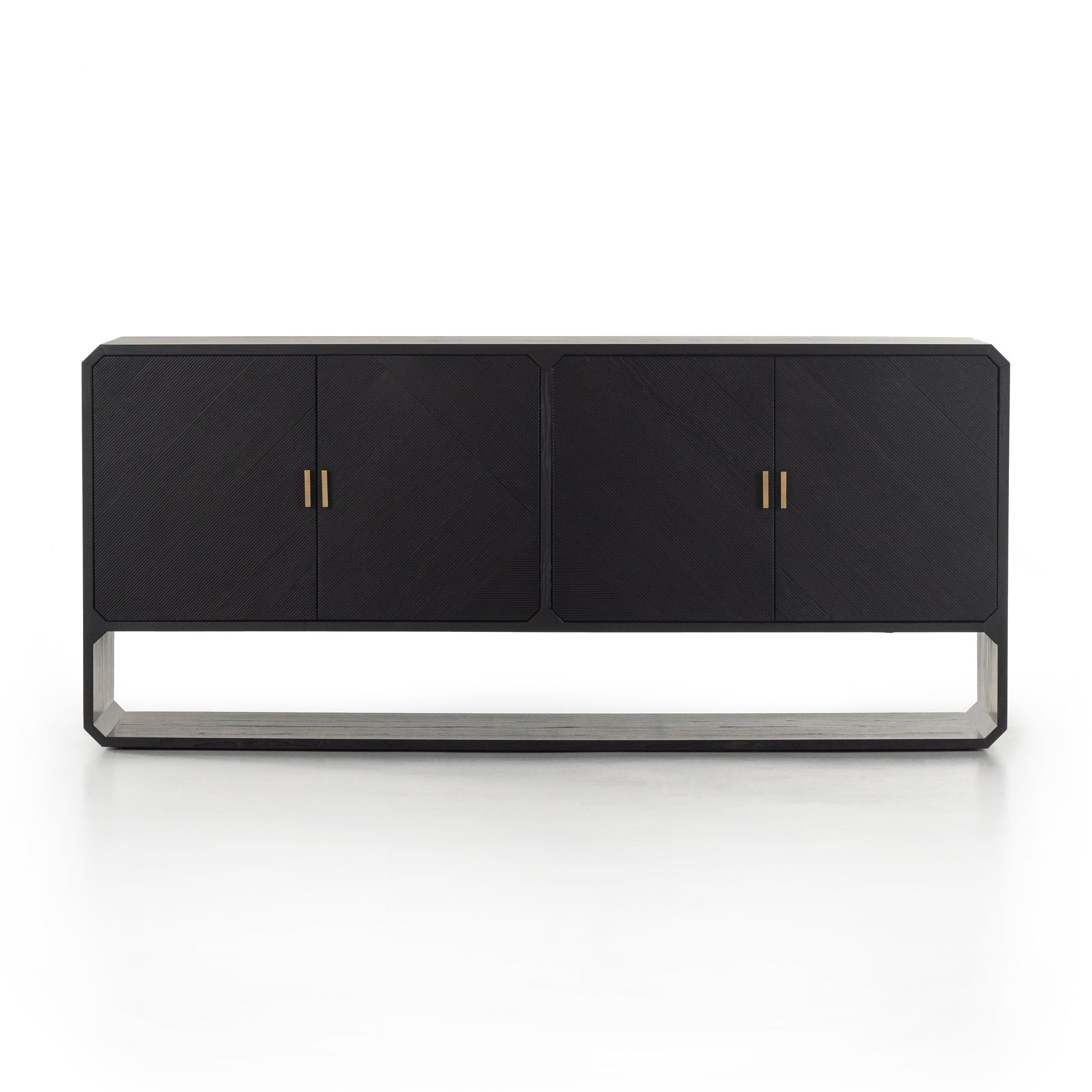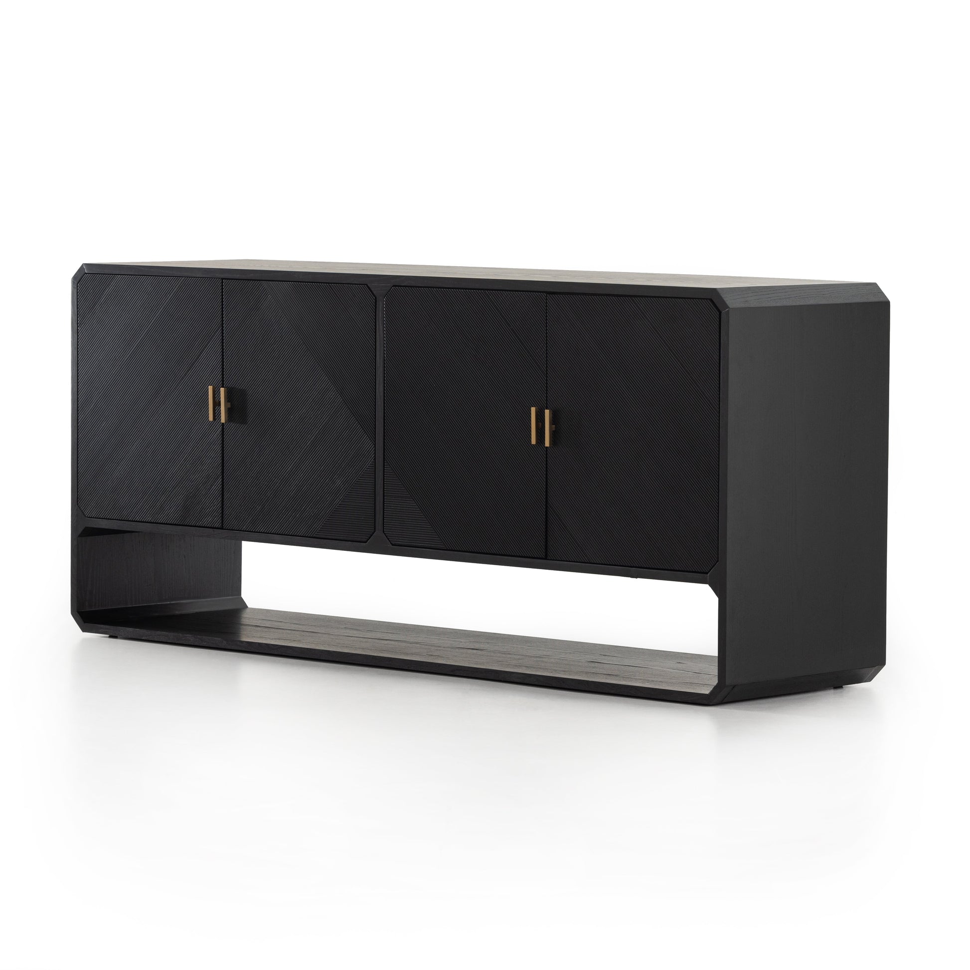 Channeling inspiration from the Seventies, a sideboard of back or natural ash adopts petite reeding for a linear look, with chamfered edging and an extended base for an open appearance with bonus storage.