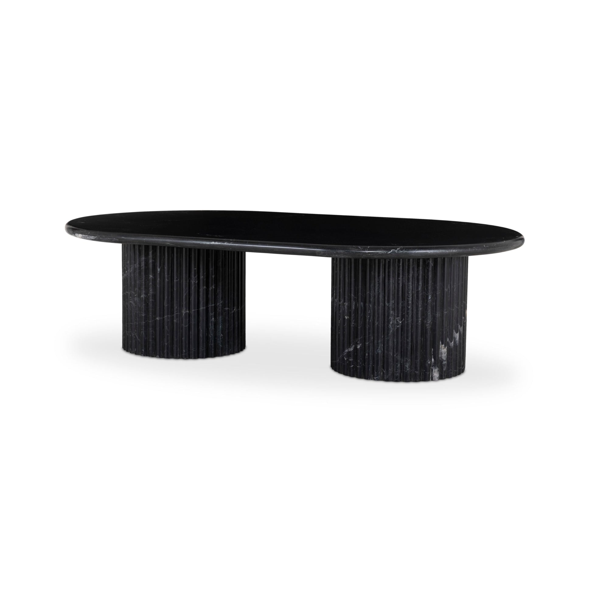 Let your style be the centerpiece of the room with the Deco Marble Coffee Table. Featuring a fluted, swirled base and polished oval tabletop, this white marble coffee table is inspired by timeless Italian design.