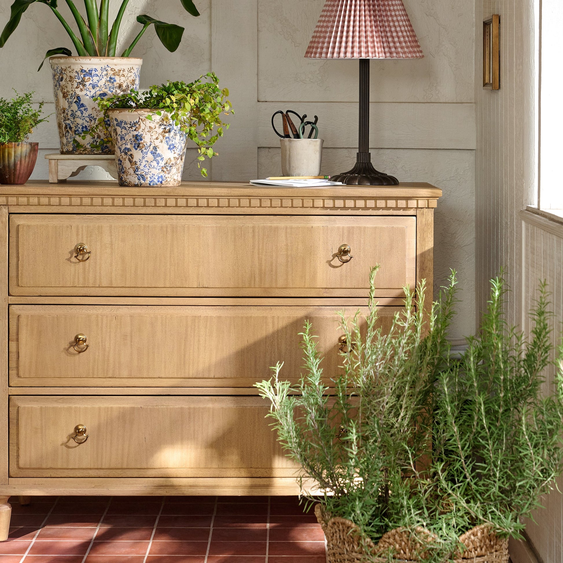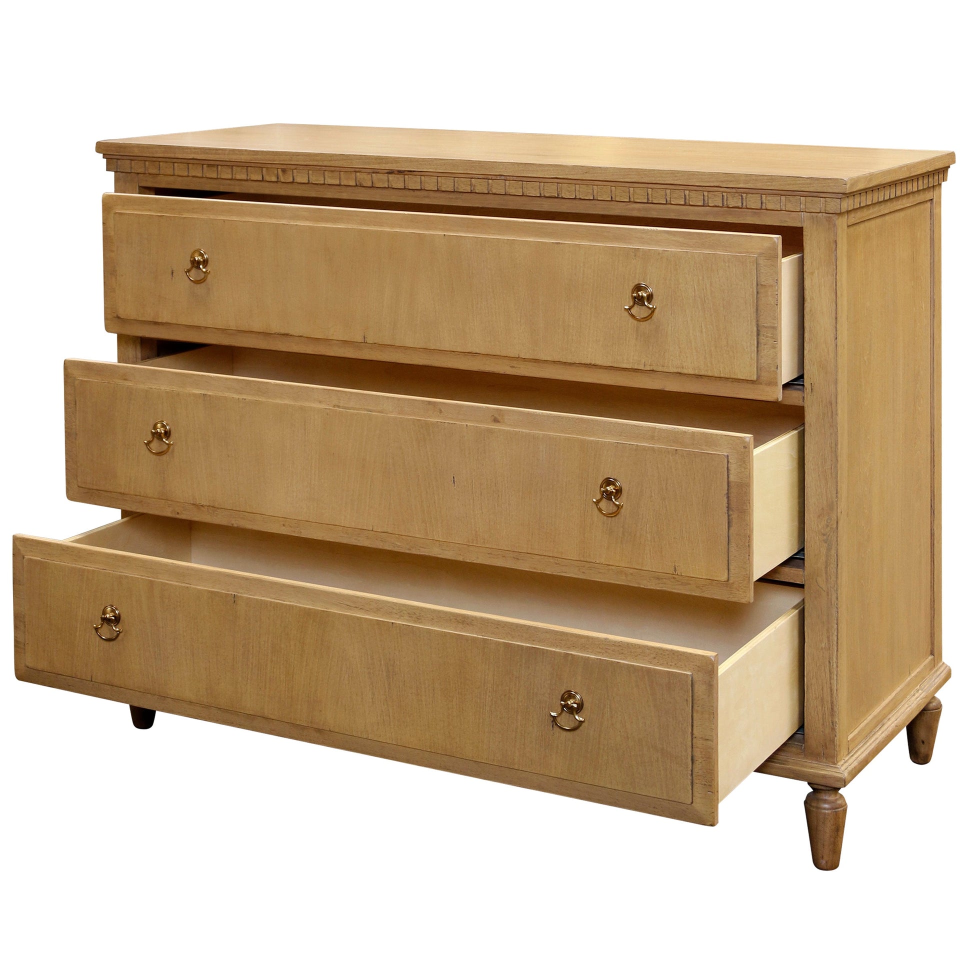 With three solid drawers, a natural wooden hue, and clean lines, the Dylan Chest offers a simple and timeless storage solution for any bedroom. With short, tapered legs and understated details, this dresser compliments any style of decor.