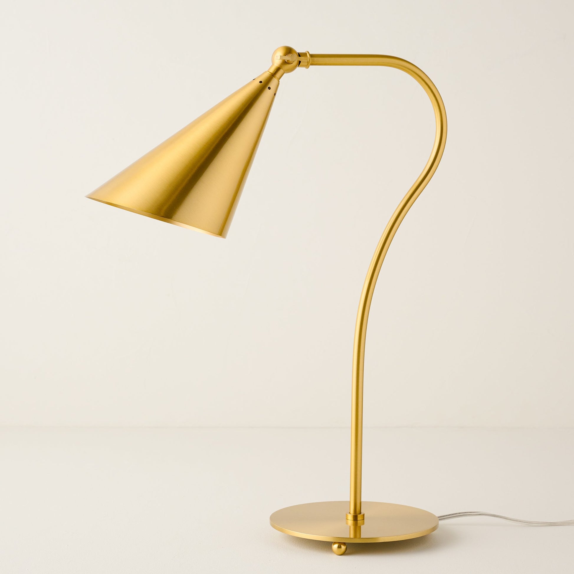 Shed light on hobbies, old and new, with the Elfie Table Lamp. Crafted with an aged brass finish, elegant gooseneck, and swivel key to customize light direction, this small-scale lamp blends utility with style.