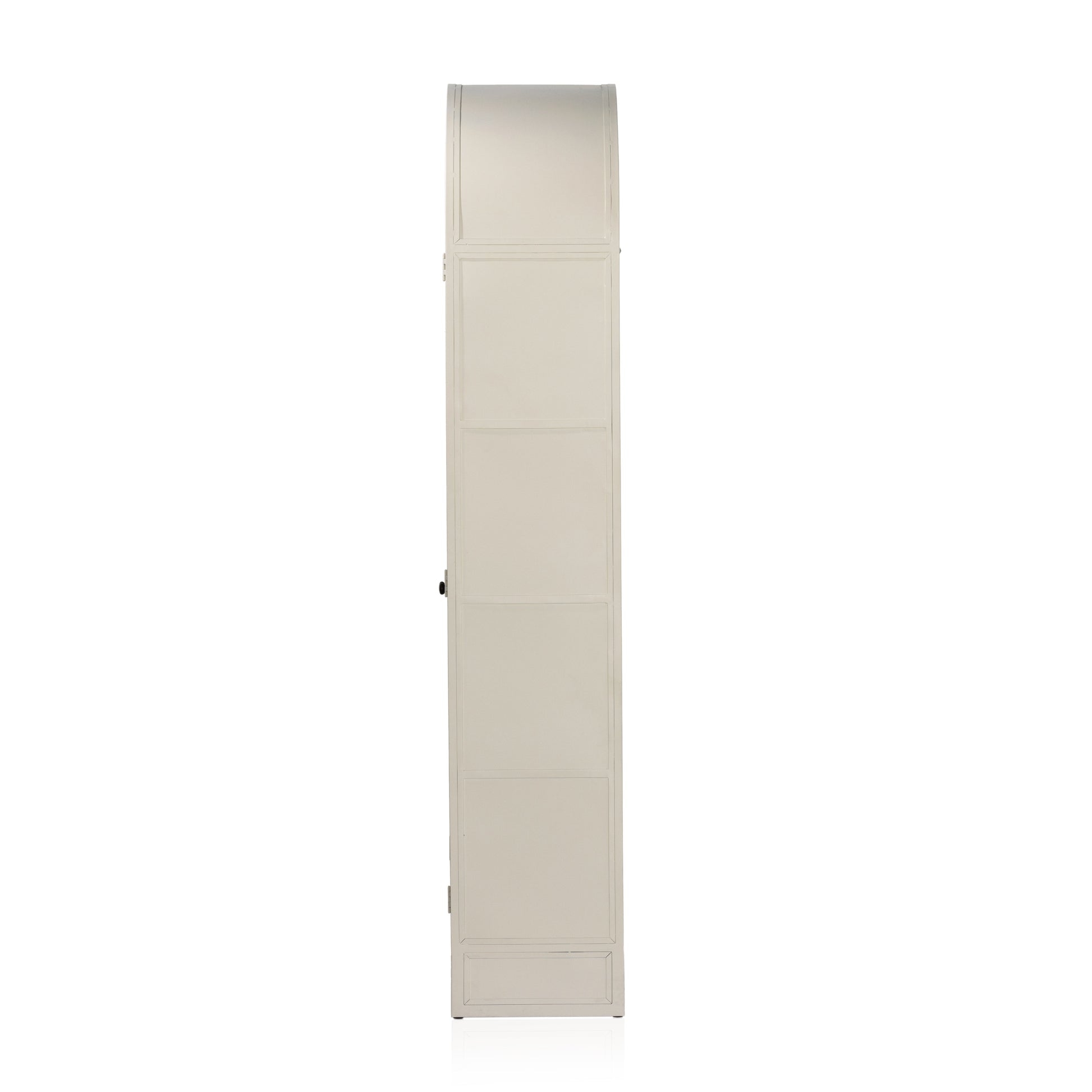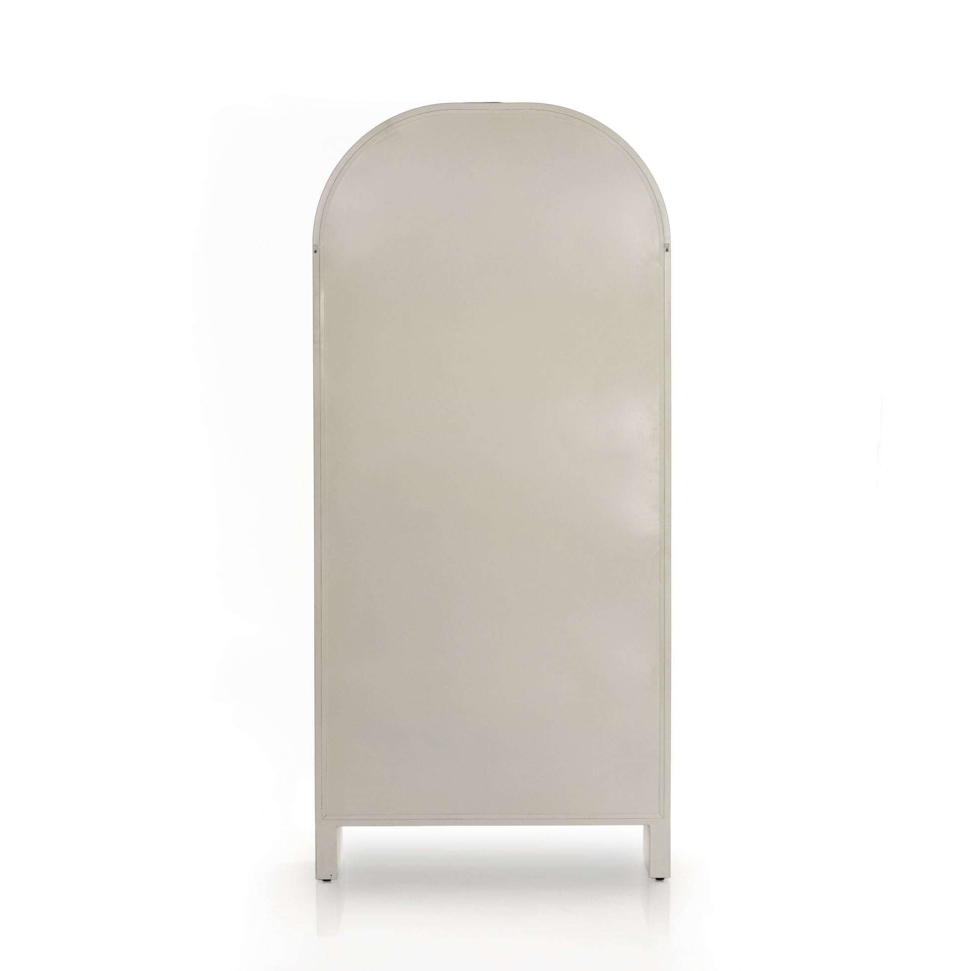 Store it in style. Made from cream powder-coated iron, beautifully arched cabinetry features glass-front doors, ideal for storing and displaying favorite books, photos, keepsakes, and more.