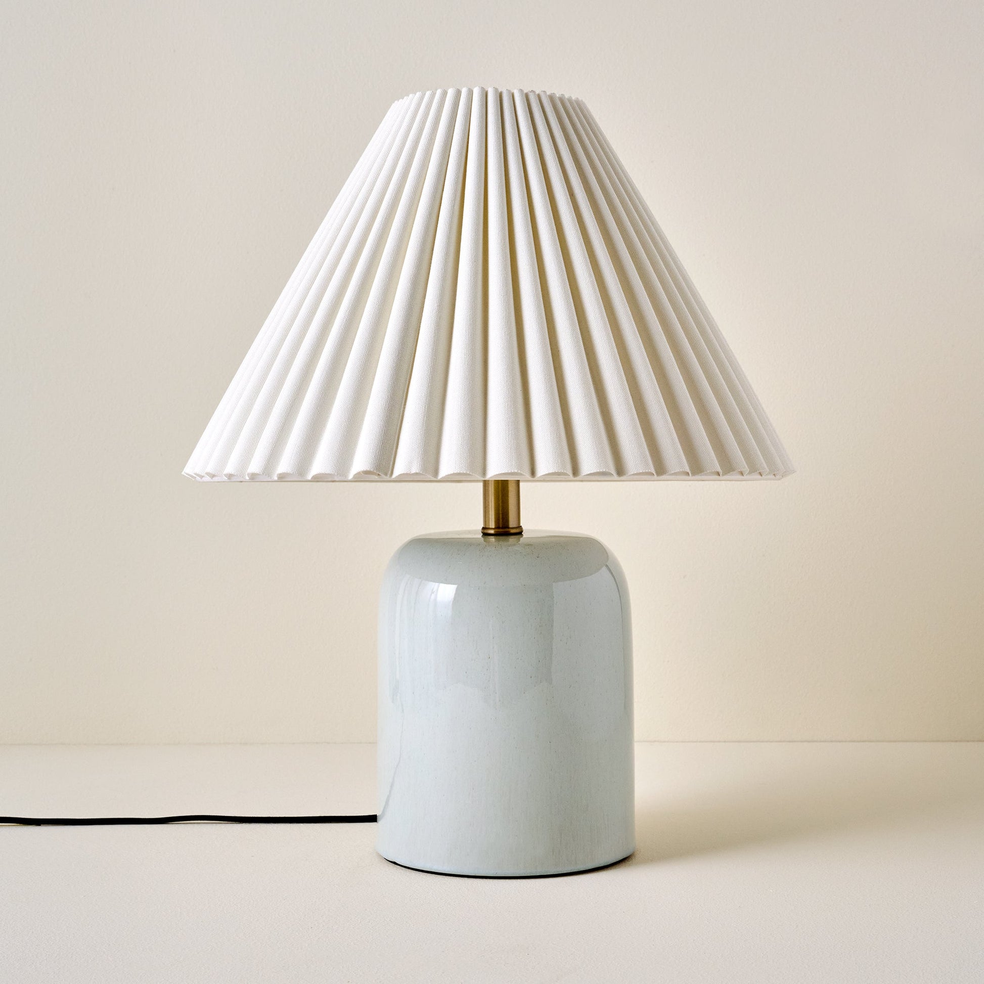 Mix, match, and build your own lamp shipped straight to your door! Our Farrah Table Lamp features a glossy, textured base in a hazy blue hue, adding dimension and subtle color to the spaces of home.