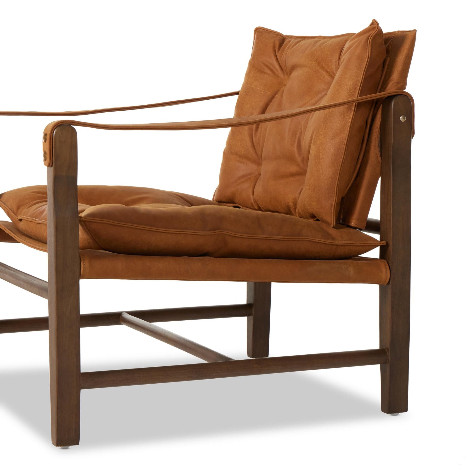 Featuring heirloom leather, the Flynn chair features a tufted sling-style seat, strap arm, and pivot back, for a vintage-feeling accent in any space. It’s upholstered in supple leather sourced from one of the oldest family-owned tanneries in Bassano del Grappa, Italy.