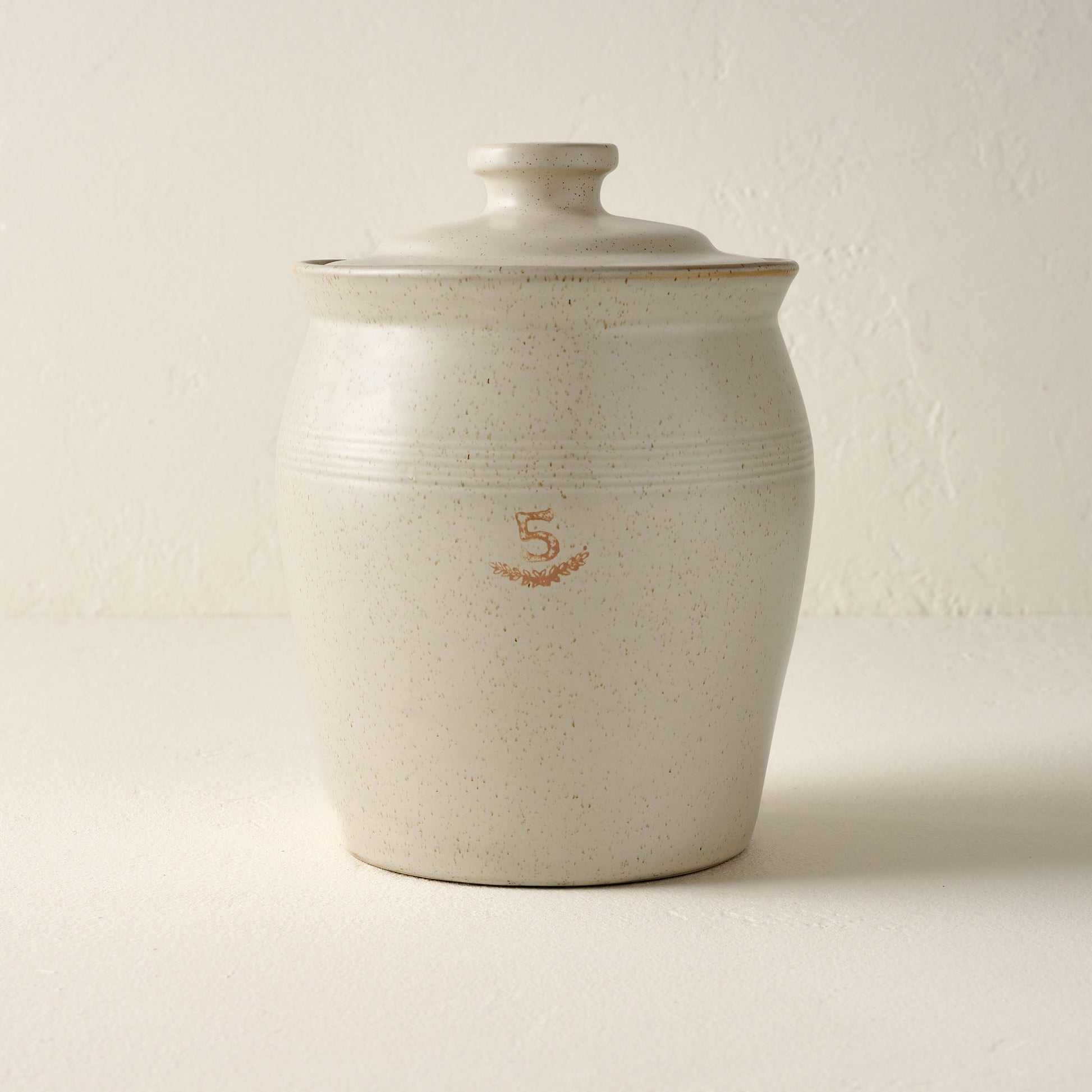 Bring a vintage feel to your countertop with our French Grey Embossed Stripe Canisters. Crafted from sturdy stoneware with a distressed glaze and our maker’s mark on the lid, these heirloom-worthy canisters are a beautiful way to keep coffee beans, sugar, and any other essentials easily within reach. Available in three sizes. Pair them with our French Grey Embossed Stripe Utensil Holder for a coordinated counter.