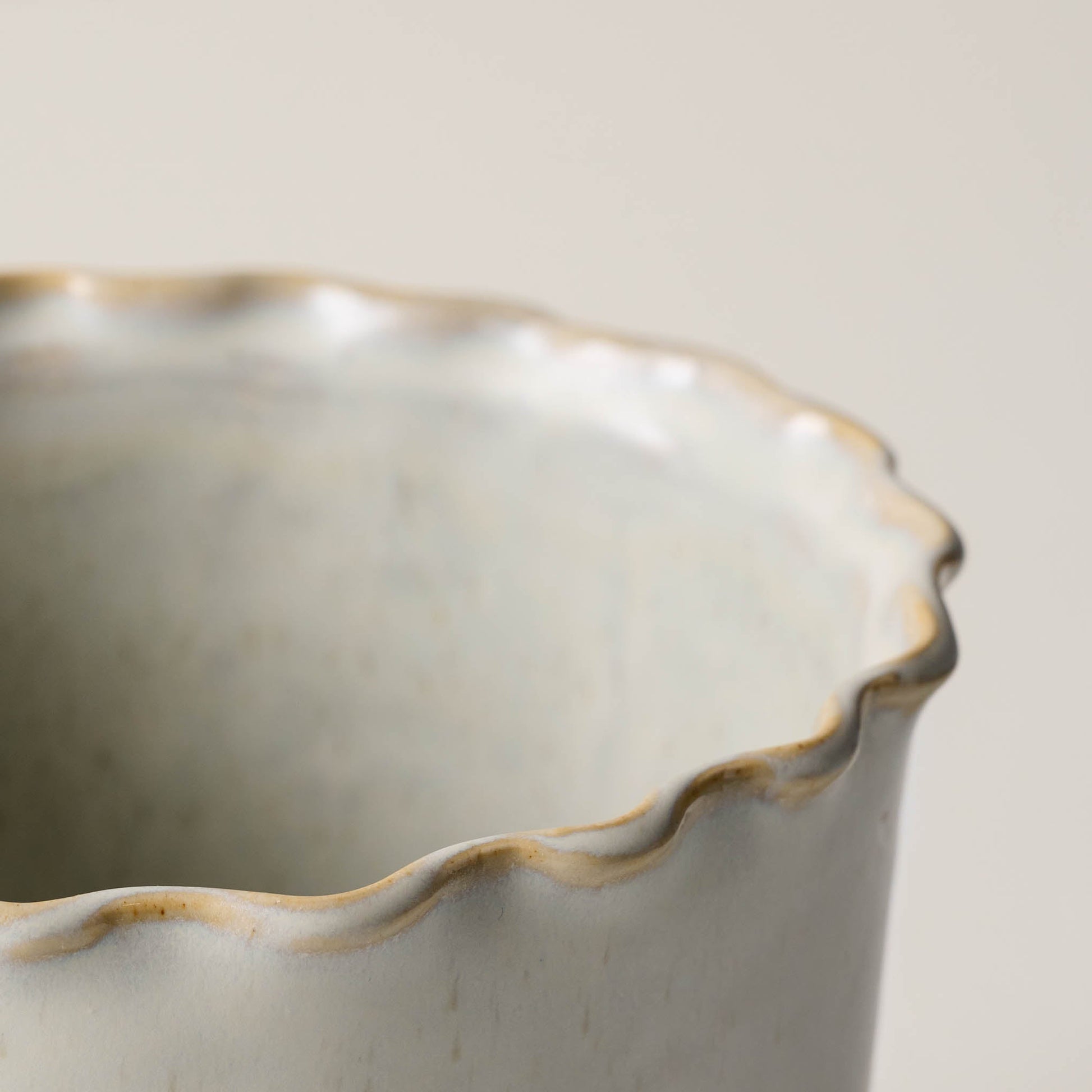 Keep kitchen essentials on hand with our French Grey Ruffle Utensil Crock. Crafted from sturdy stoneware, this crock features a playful, ruffled edge paired with our French Grey glaze.