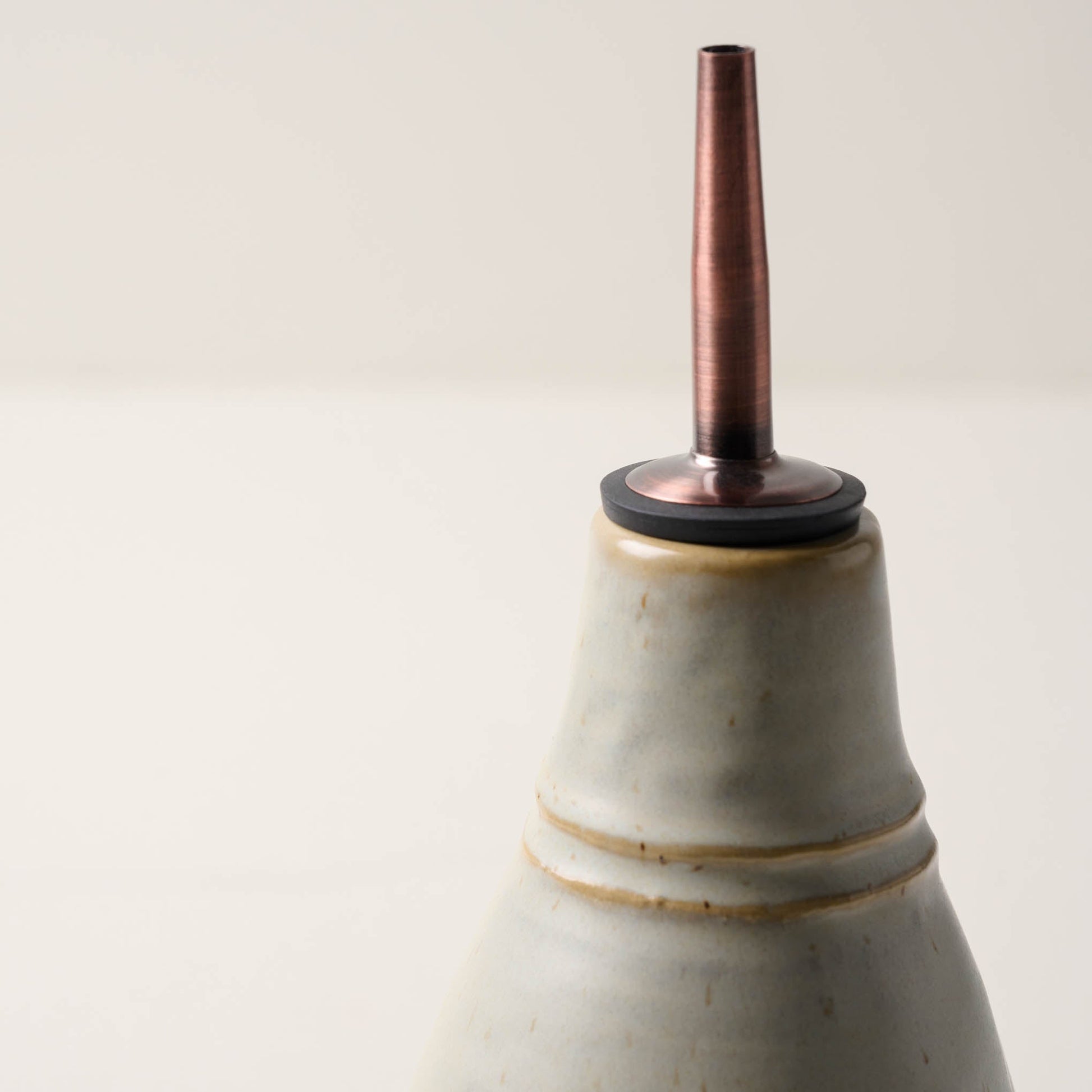 Ideal for dressing leafy greens or adding a drizzle to Caprese salad, our French Grey Vinegar Pour features a copper spout and elegant ridged detailing. This 23 oz. stoneware bottle makes a beautiful addition to the countertop sitting solo or paired with the French White Speckle Oil Pour for a contrasting set.
