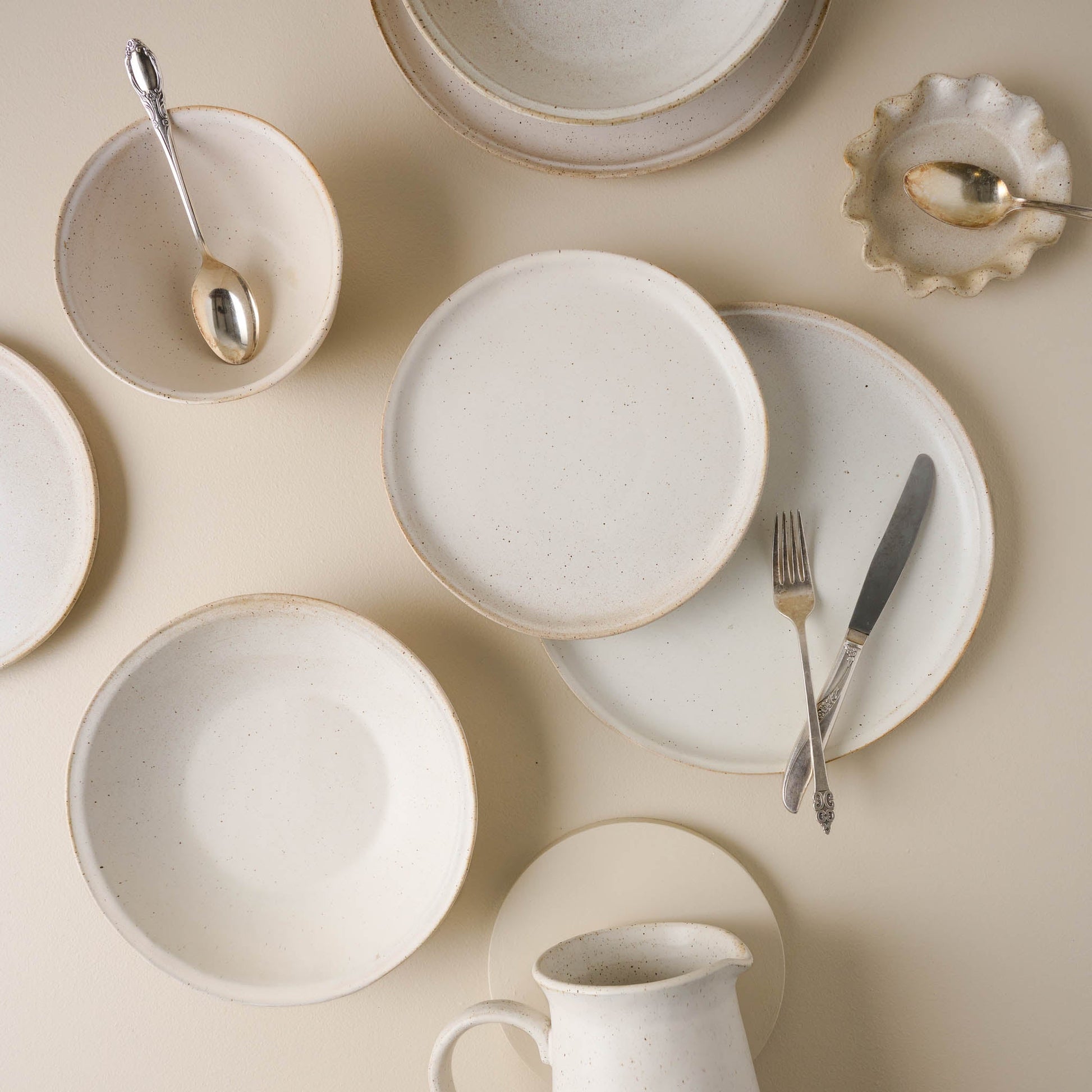 Elevate dinner hour with our French White Speckle Plate, a color extension of our well-loved French Grey Collection. Featuring a creamy white reactive glaze and a subdued speckled texture, this plate brings timeless beauty to the table. With two sizes to choose from, these stoneware plates are ready to take on any occasion—from formal dinners to casual weeknights at home.