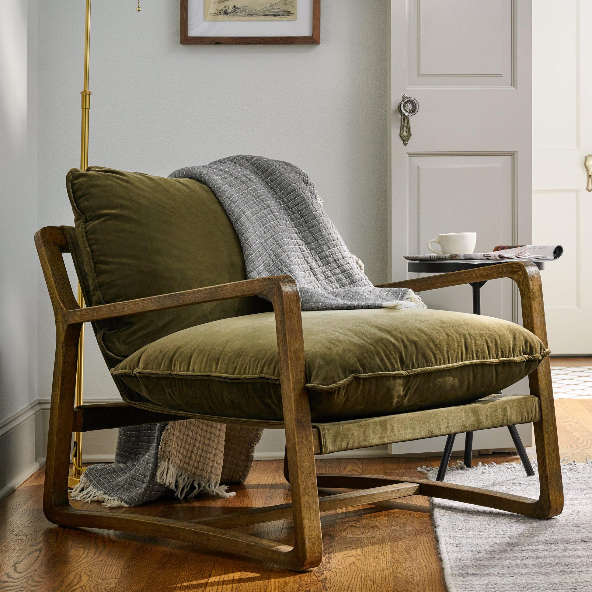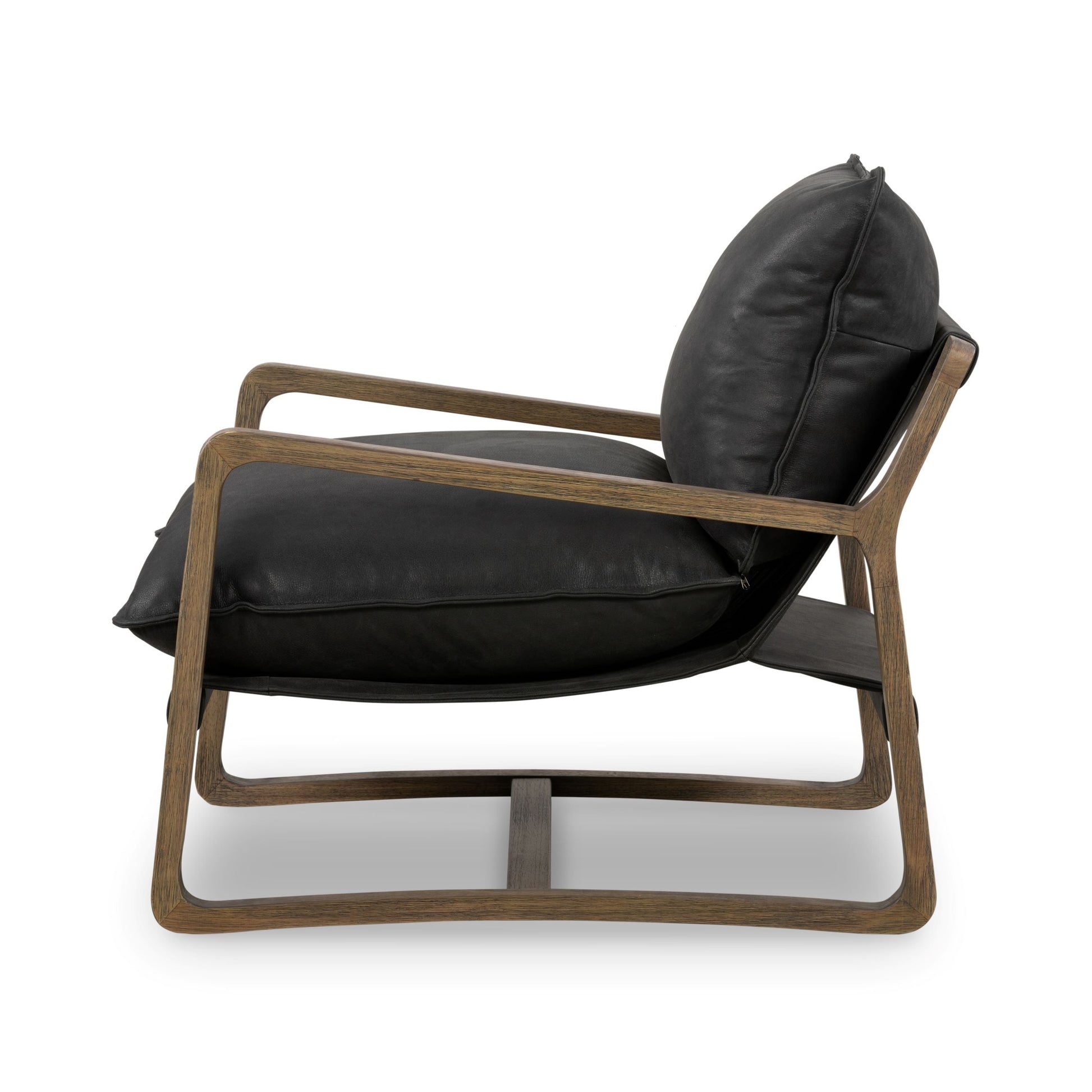 Featuring a hand-shaped oak frame inspired by the laid-back style of mid-century design, the Gerard Chair offers both comfort and architectural aesthetics. Its deep cushions are covered in a selection of either top-grain leather or performance-grade upholstery for a versatile look that will last.