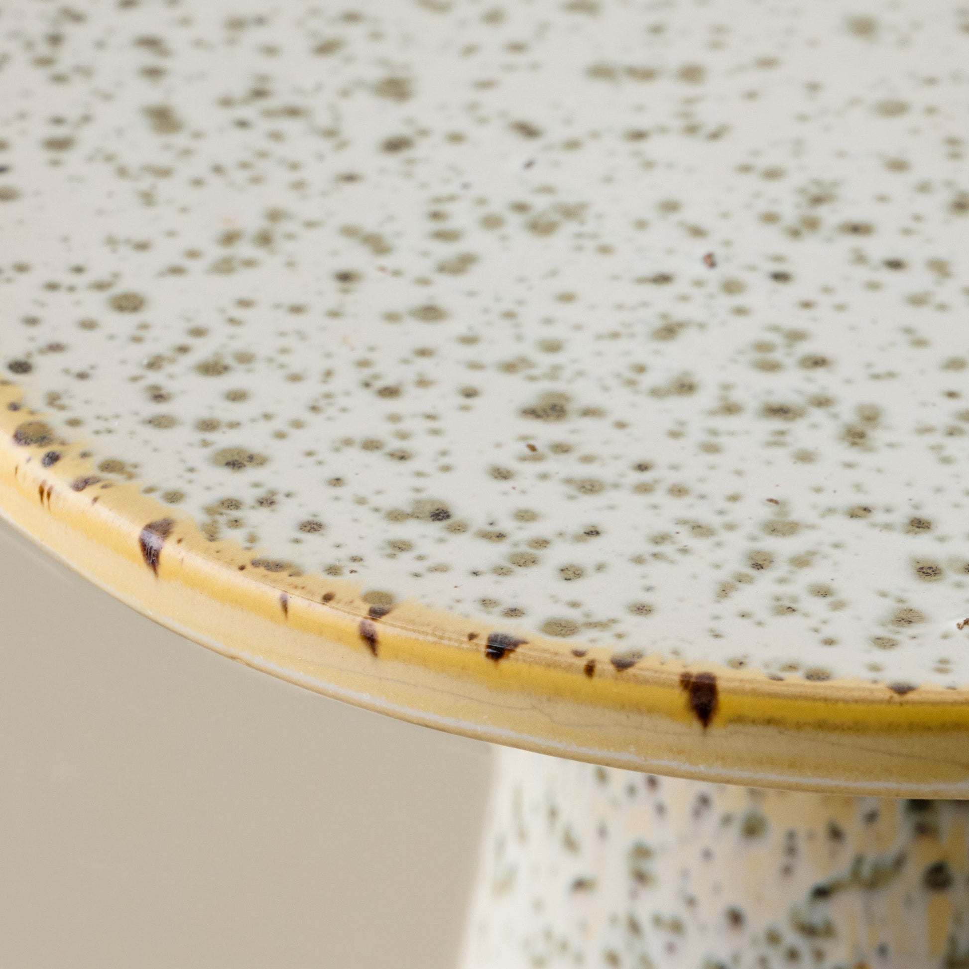 Elevate your dessert presentation with this vintage-inspired Forest Green Speckled Cake Stand. Crafted from durable ceramic, its charming speckled finish adds a rustic touch to any table setting. Perfect for showcasing cakes, pastries, or appetizers with style and simplicity.