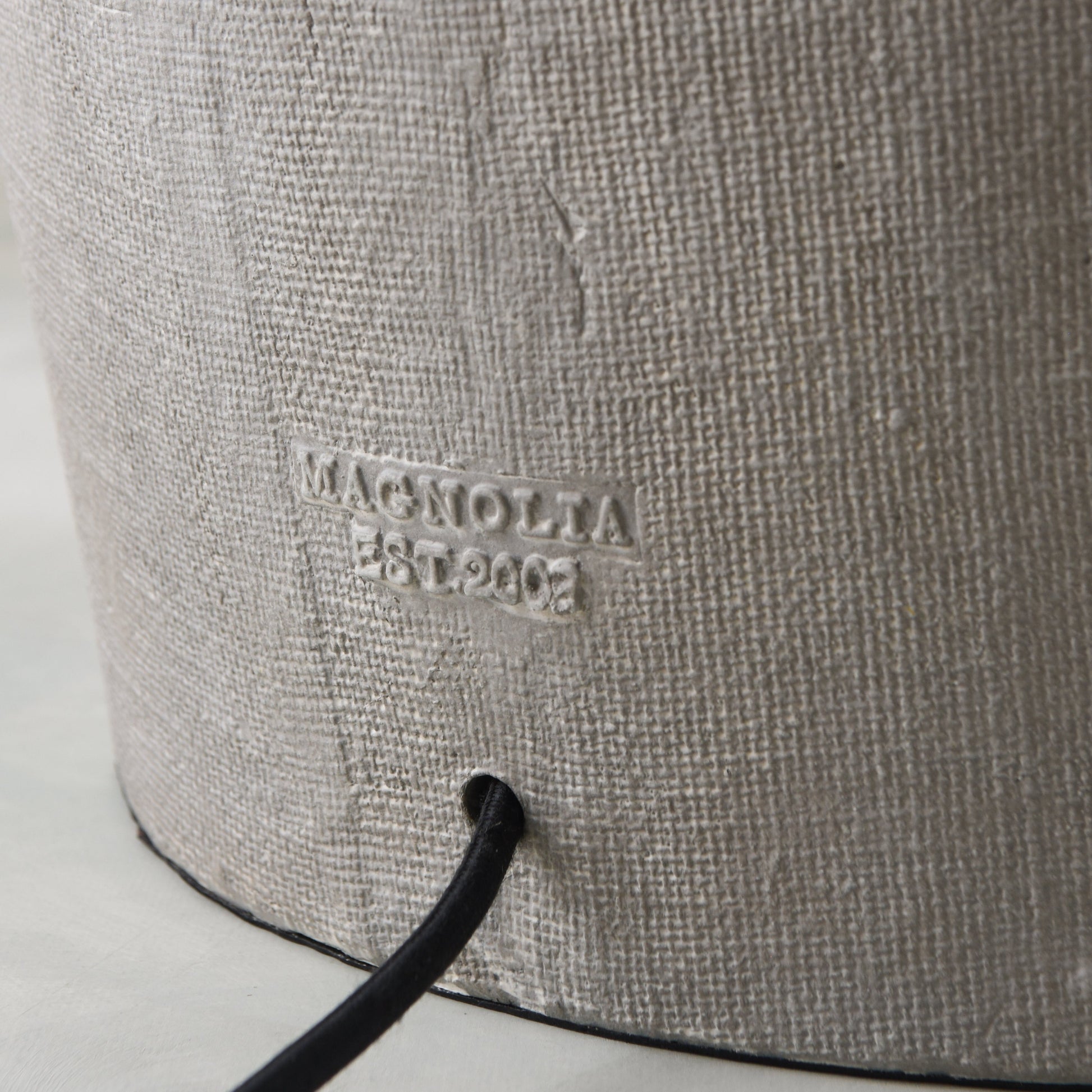 Sculptural on a grand scale, the Greenleigh Table Lamp infuses a space with an earthy, artisanal character. Exclusive to Magnolia and available in two colors, this textural table lamp features a ceramic base with a soft bisque finish, and classic cotton drum shade, and fabric-wrapped cord.