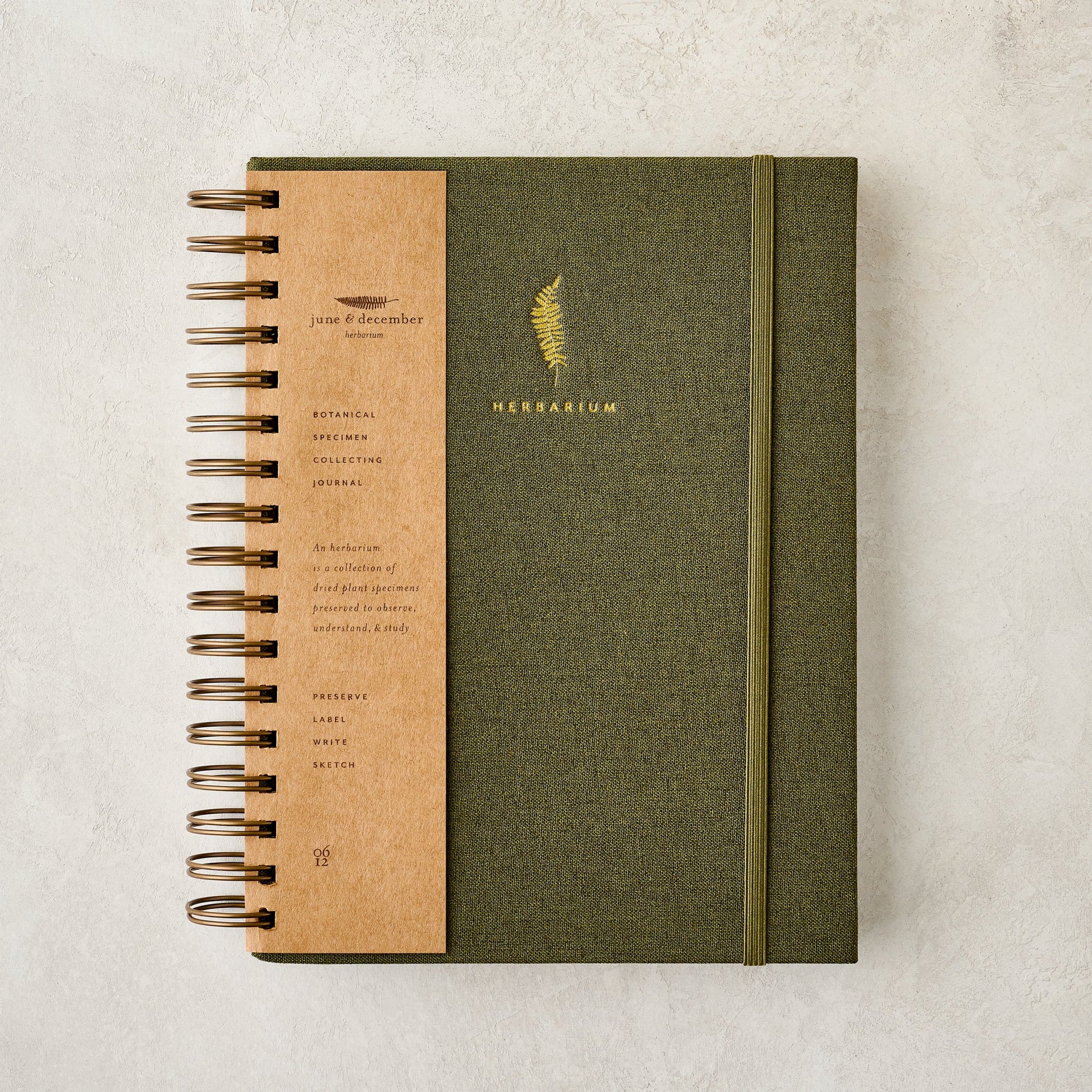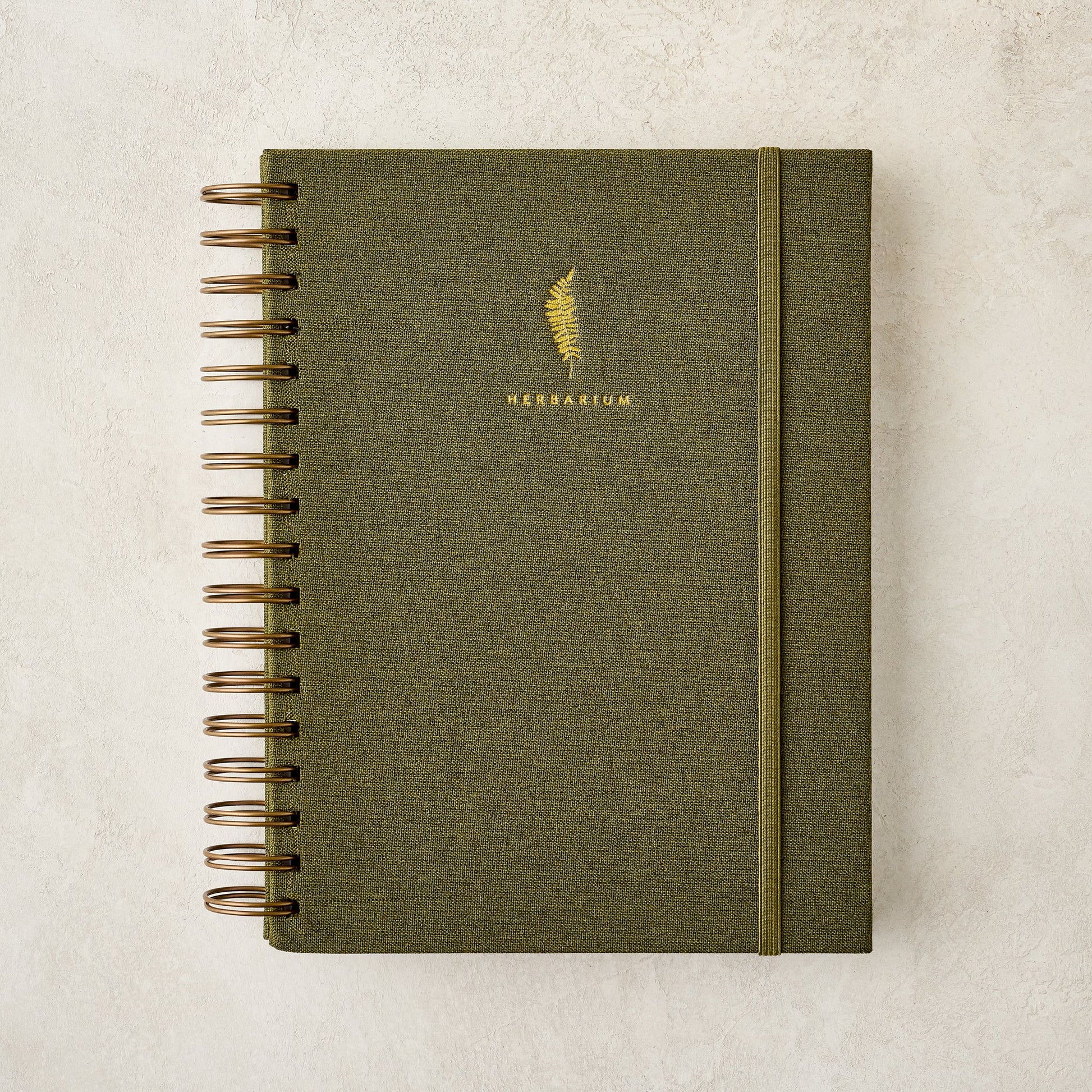 Inspired by Italian herbariums, this linen-covered journal is designed to hold dried and pressed botanicals as keepsakes. Made with 100% PCW-recycled, acid-free card stock that helps preserve clippings for observing and studying, this journal also features gold foil embellishments on the front cover, a patterned inside cover, and printed pages to label, journal, or sketch around your collection. Designed by June & December.