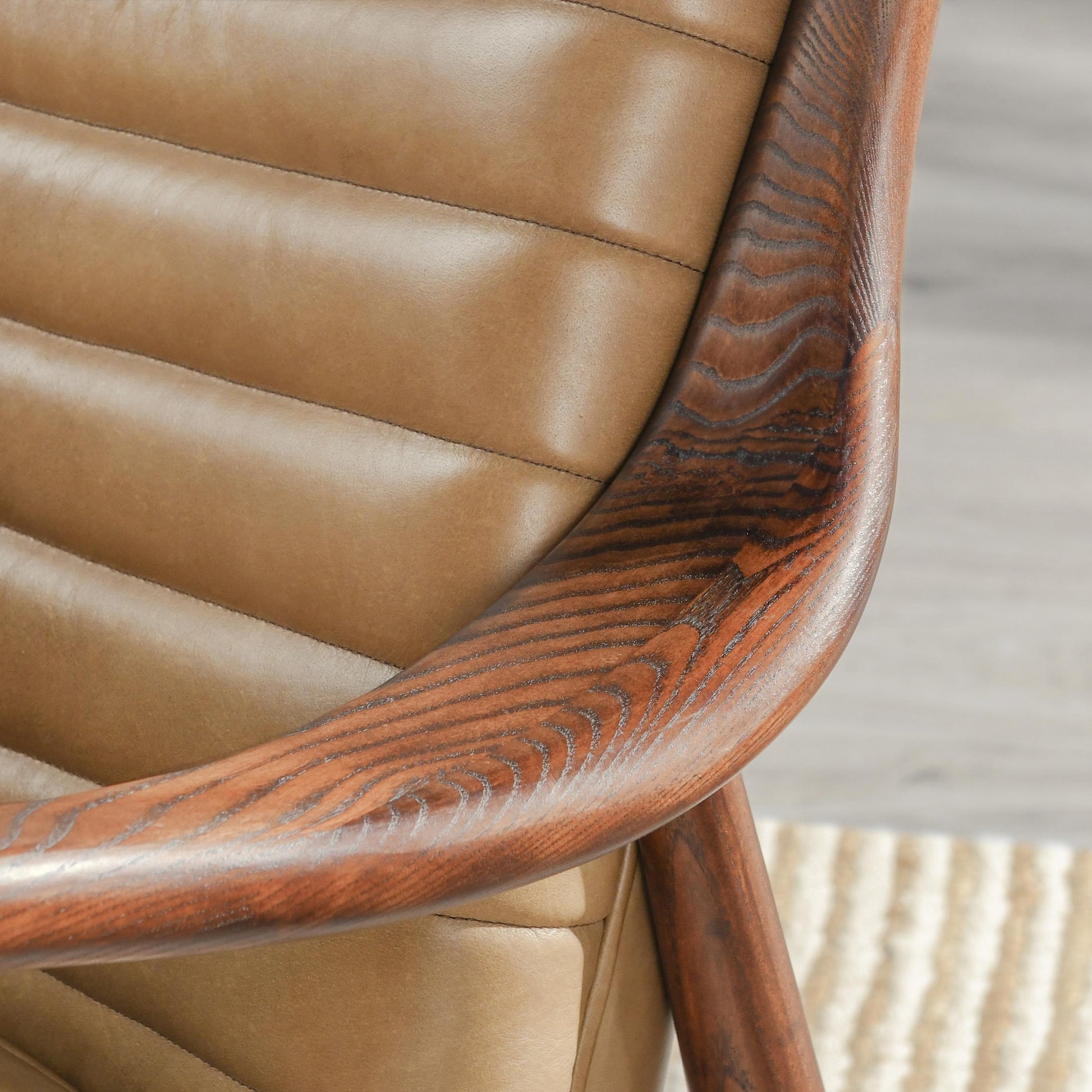 With warm, chestnut-toned stitched leather and smooth wooden arms, the Holland Channel Stitch Chair adds an inviting touch to any cozy space. The perfect accent in a living room, office, or entryway, this chair seamlessly blends modern with timeless.