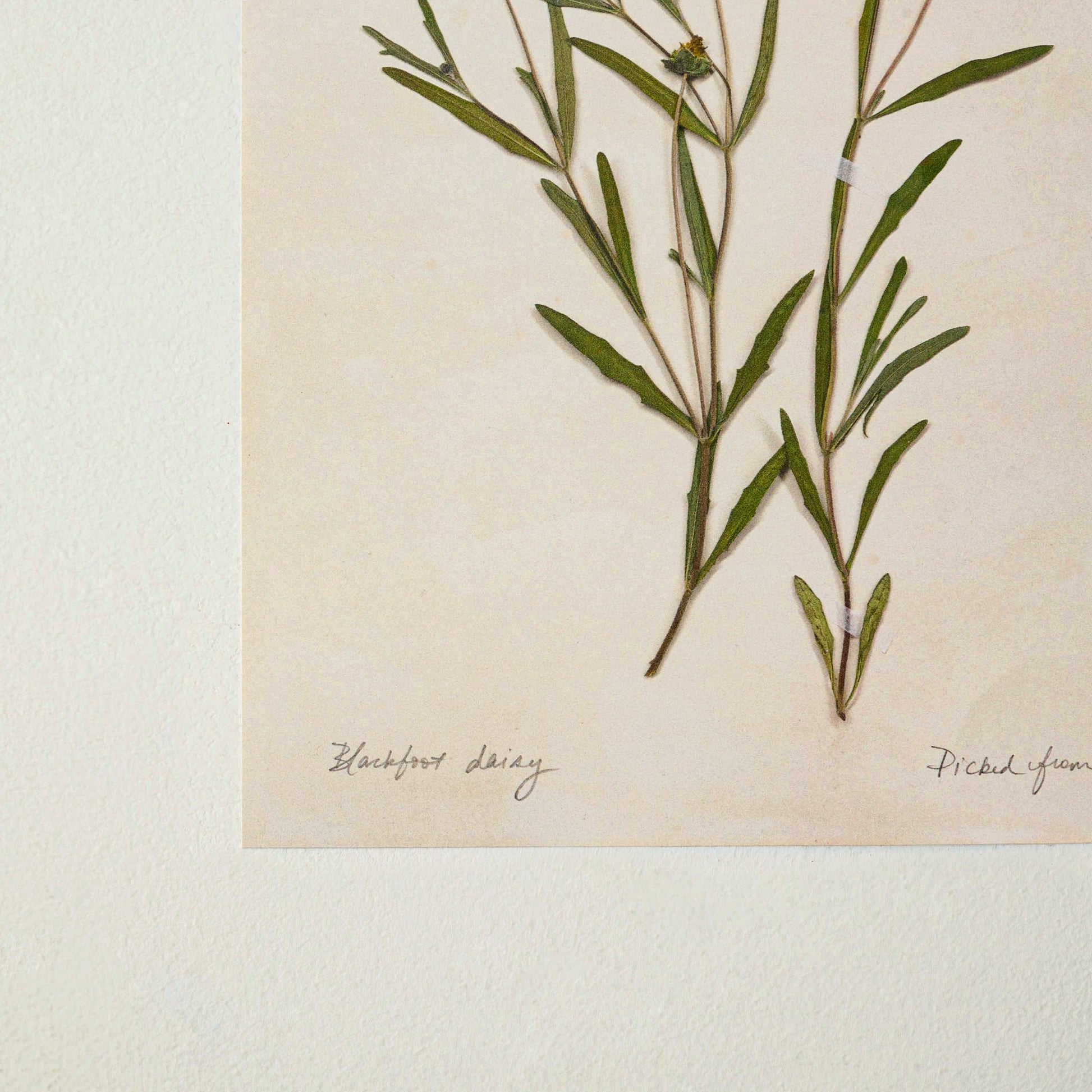 Inspired by one of Jo’s favorite hobbies, this hand-pressed herbarium print displays the natural beauty of a Blackfoot daisy. Sprawling Texas-native stems are marked by script notations atop quality, vintage-like paper. Exclusive to Magnolia.