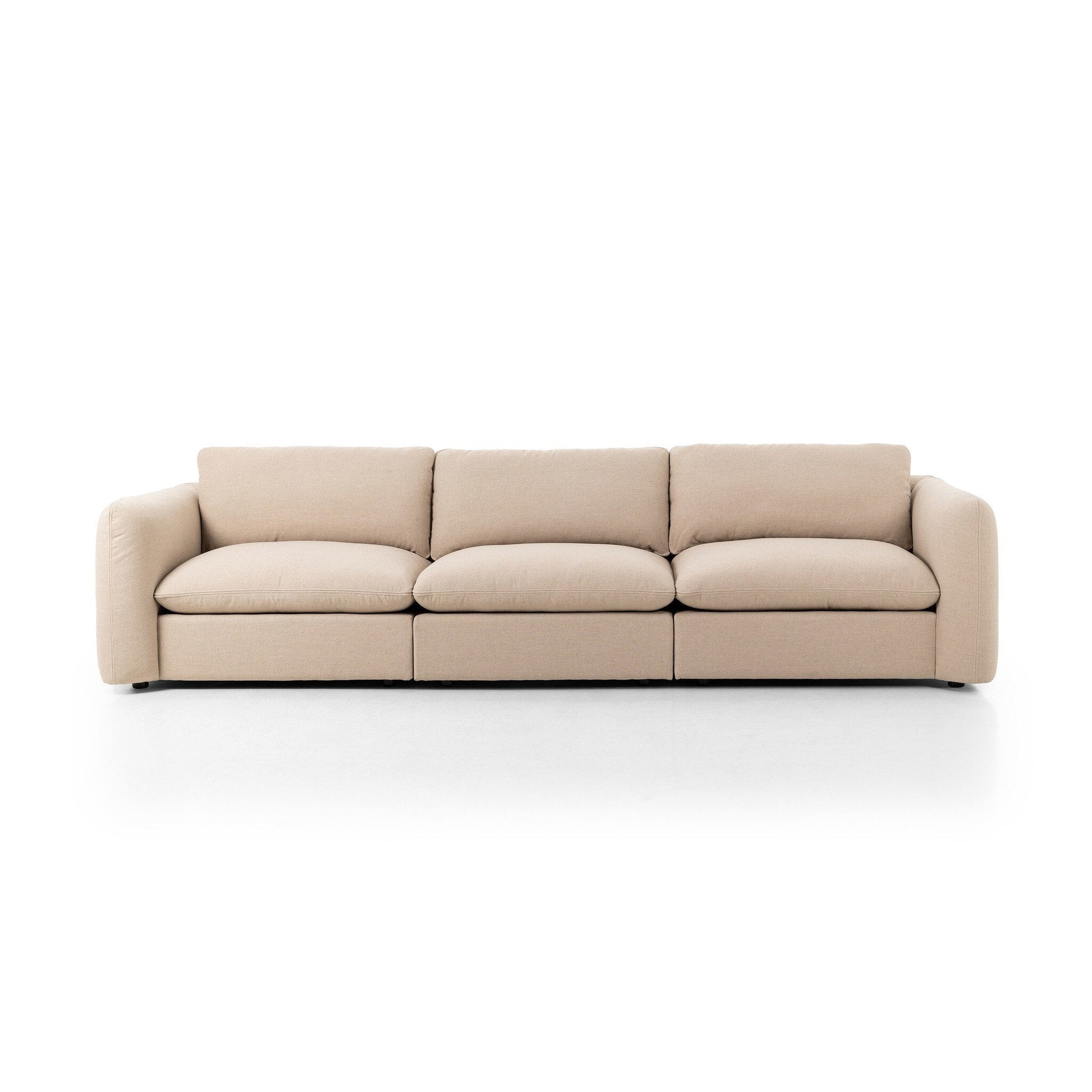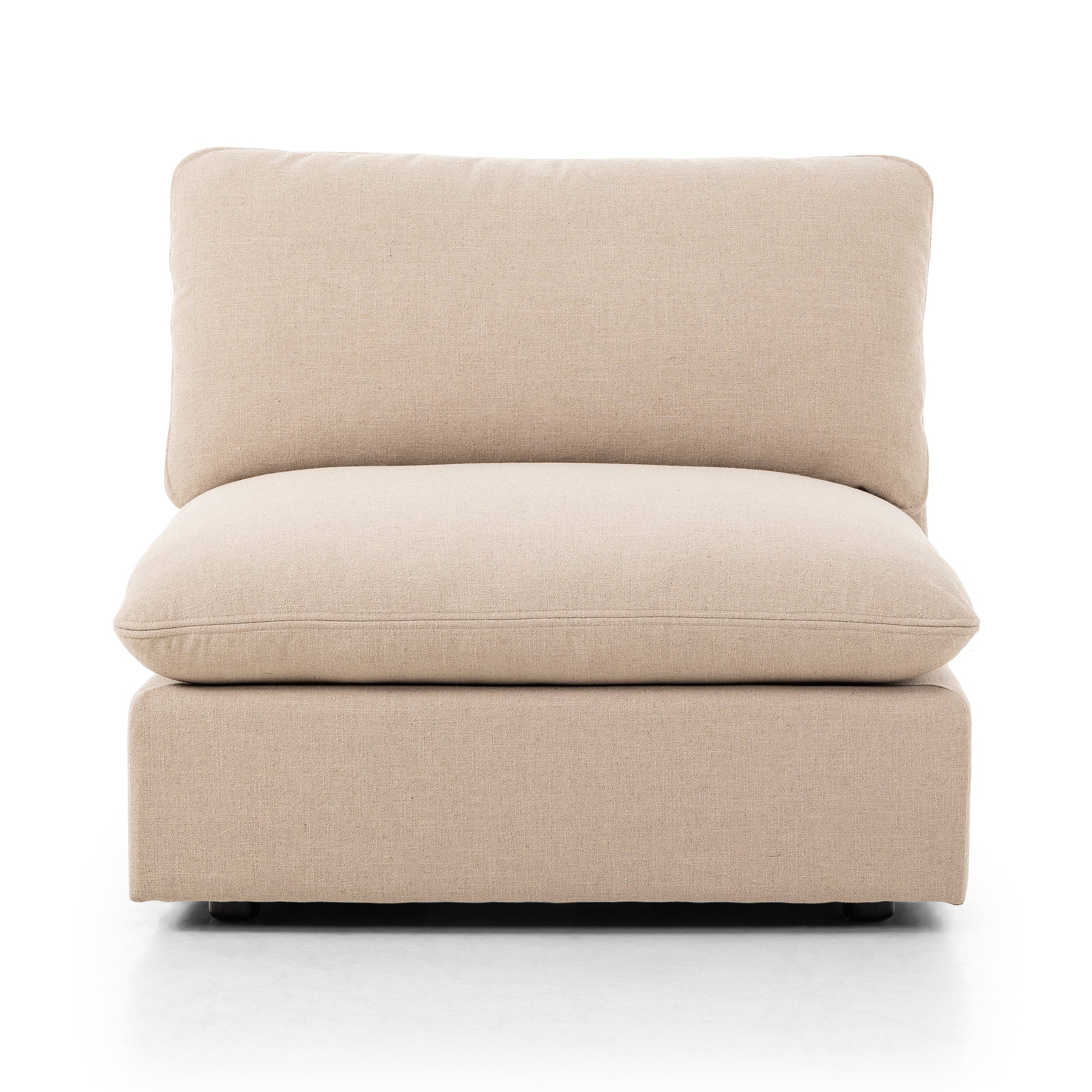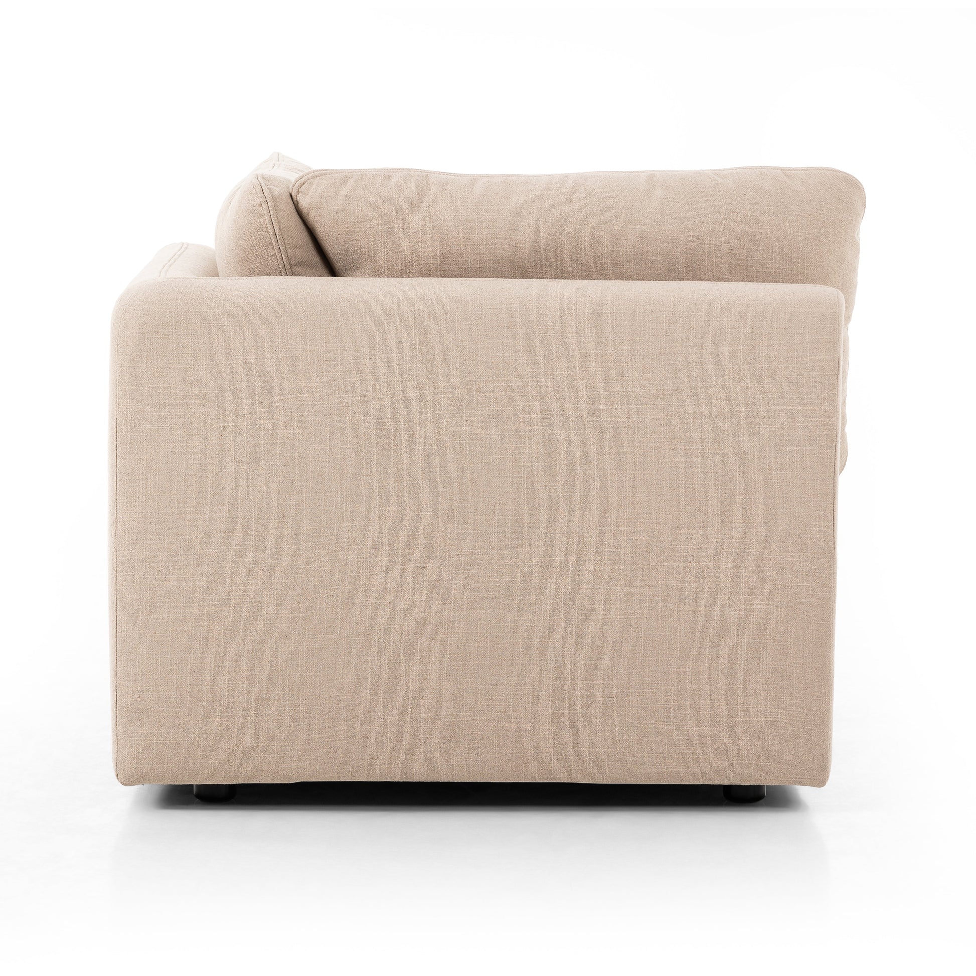 High-performance linen offers the best of both worlds on this plush and welcoming sectional. Inflated, pillow-inspired cushioning all around brings cozy comfort to the room. Designed with feather-fiber blend cushioning and a soft, durable linen material, the performance fabrics are specially created to withstand spills, stains, high traffic and wear, ensuring long-term comfort and unmatched durability. Designed to match the Laura Ottoman, another wonderful addition to your customized sectional.