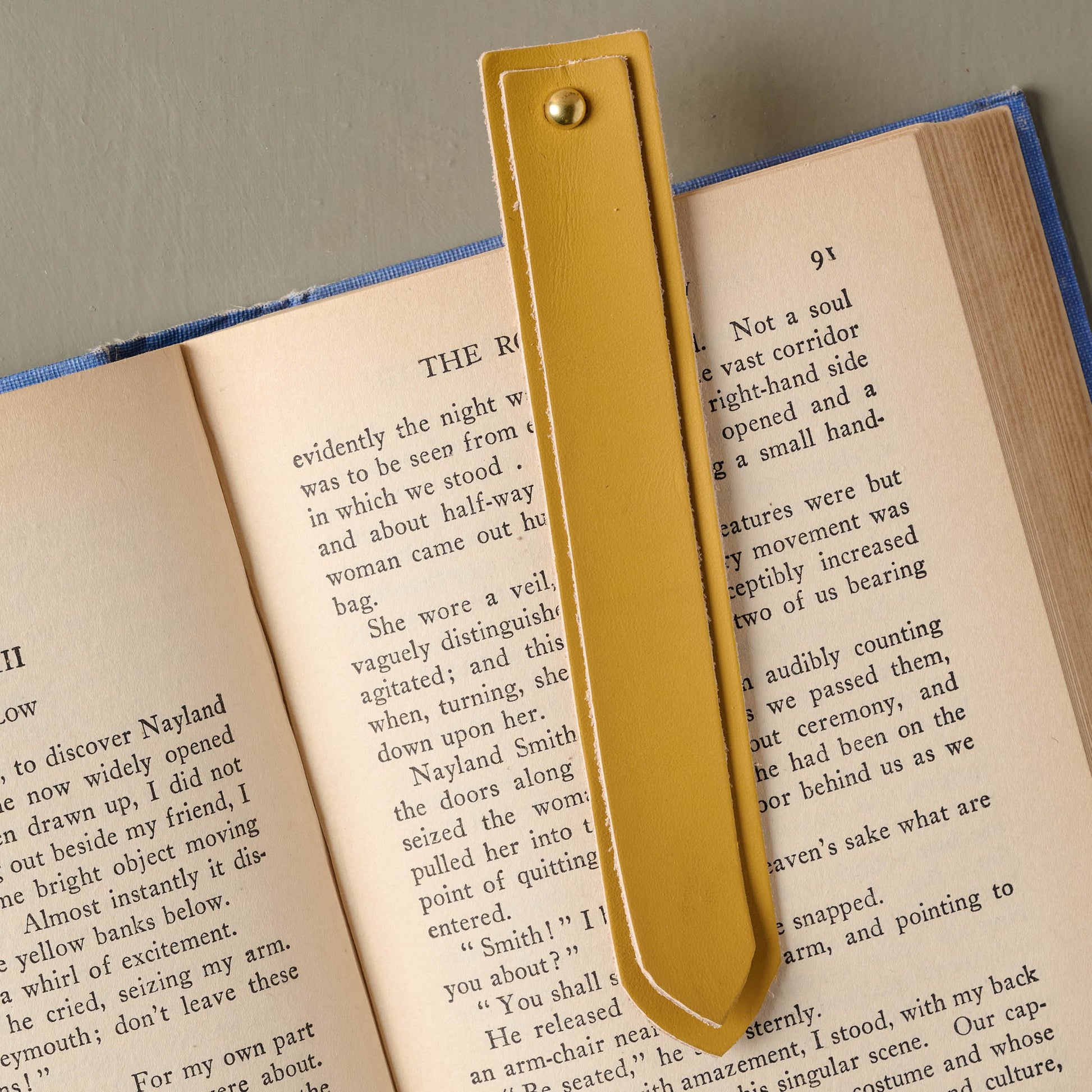 Give your favorite reads a little extra love with this Leather Bookmark. Handmade in the USA from genuine leather, the top flips up to hug the page where you left off. Available in Mustard and Blush.