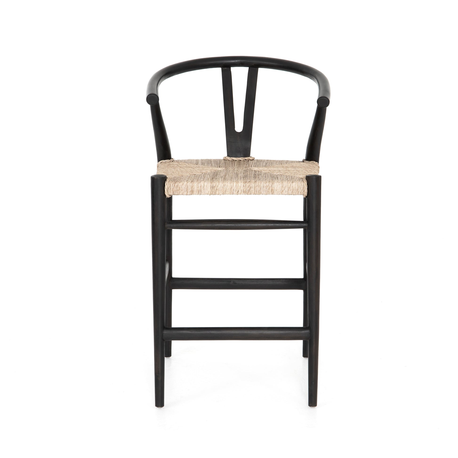 Modern curves provide a fresh twist on classic wishbone-style seating in the Lennox Bar Stool. Its vintage, white, all-weather wicker is paired with teak framing for an abundance of natural texture. Available in two colors. Note: Black teak is for indoor use only. Other colors should be covered or stored indoors during inclement weather and when not in use.