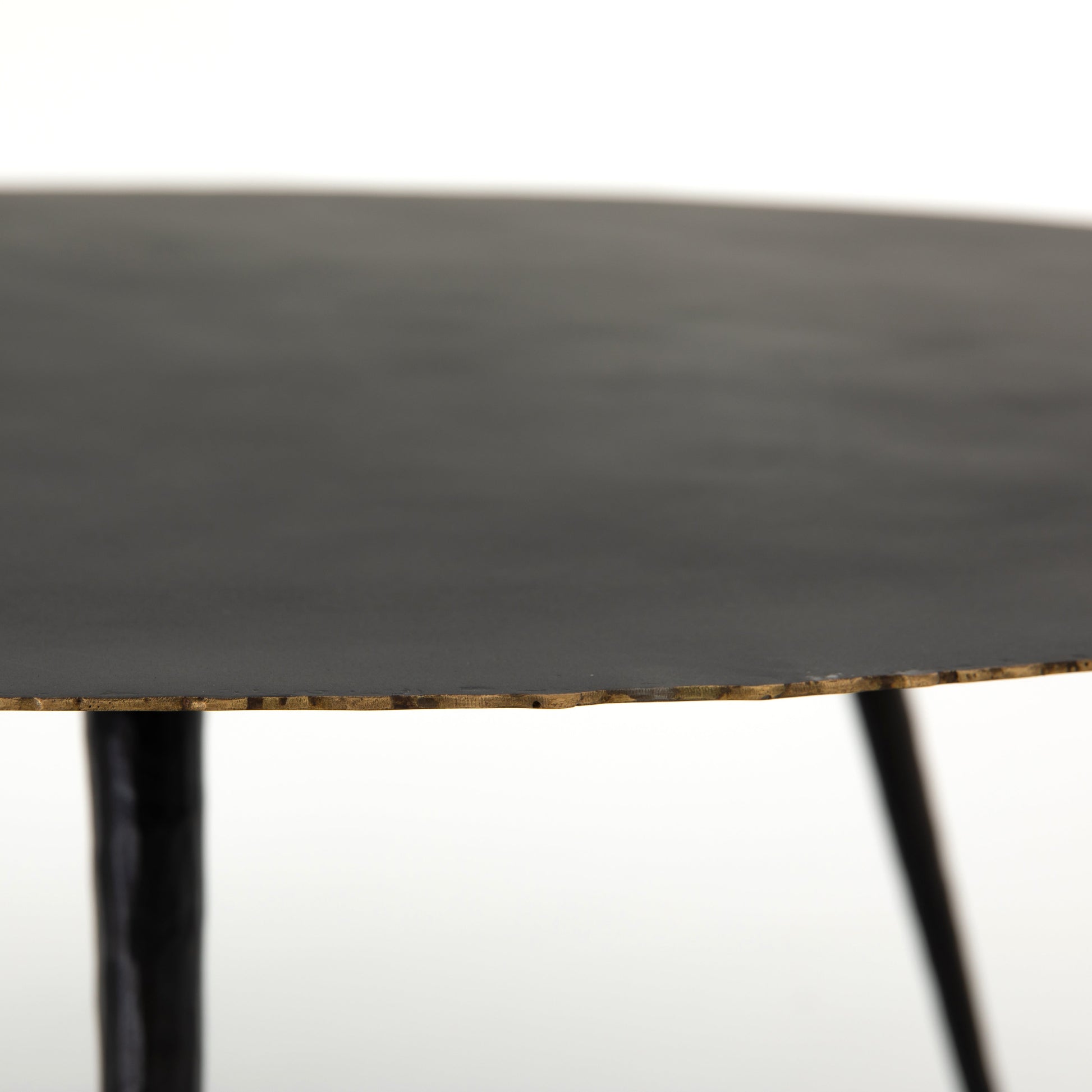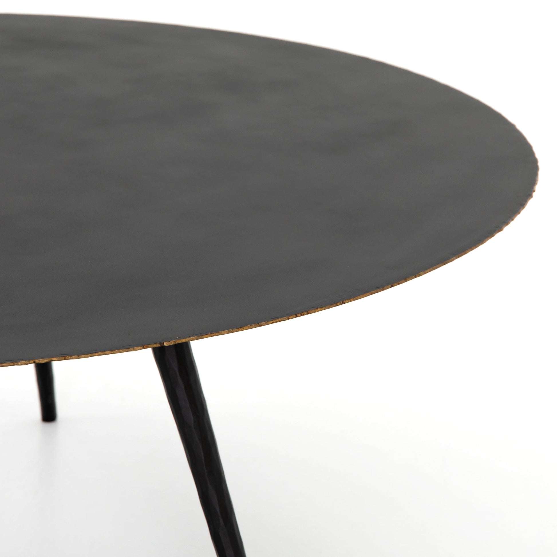Slim, classic, and versatile, the Louise Coffee Table brings a sophisticated edge to any space. A gold rim provides subtle shine in contrast to the rubbed black finish of this sleek iron tripod table. Pair with the Louise End Table and Louise Console Table for a coordinated look.