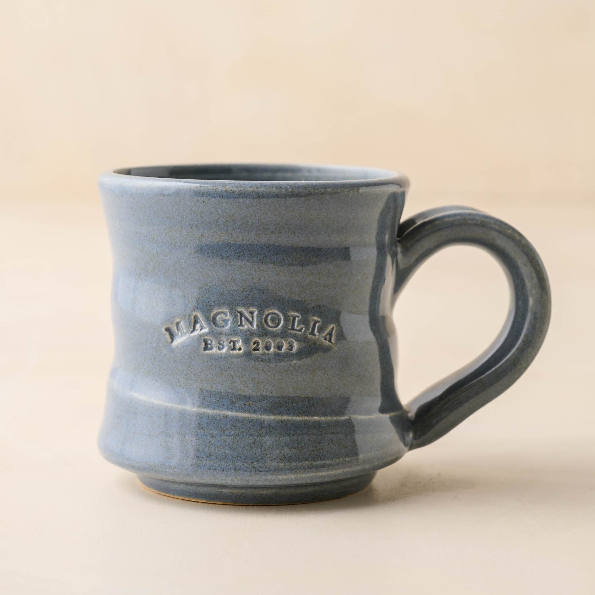 Handmade by local artists at Black Oak Art in Waco, our Magnolia Established Mug features a light gray glaze and a debossed logo that reads, “Magnolia est. 2003.” Its high-quality, hand-thrown style may make this mug your go-to for that morning cup of coffee.