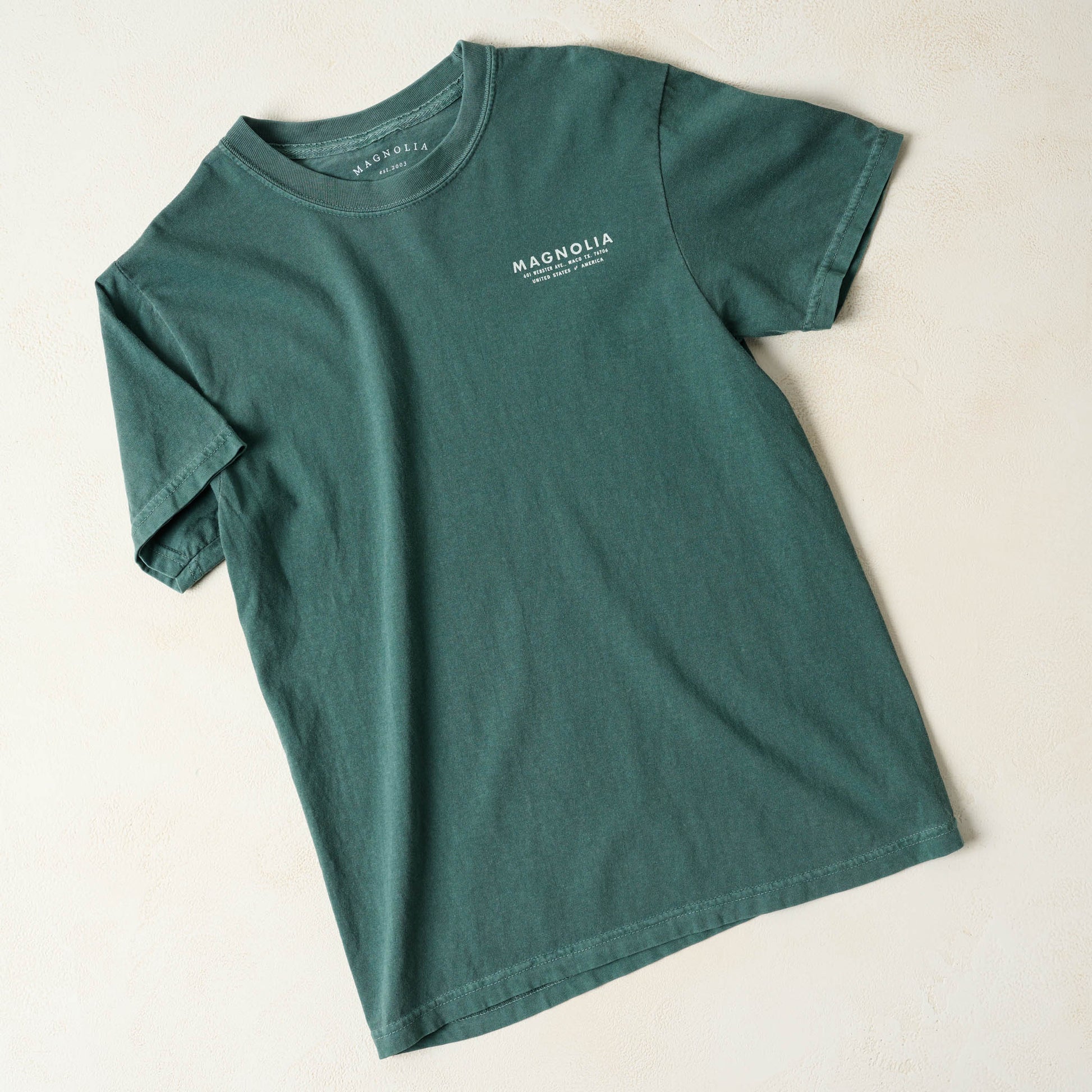 Inspired by the designs on our Magnolia Playing Cards, the Magnolia Silos Shirt features a large-scale graphic of the Silos grounds printed on the back and “MAGNOLIA” printed on the front top corner. Made of ultra-soft cotton fabric, this tee is a staple in everyday wear.