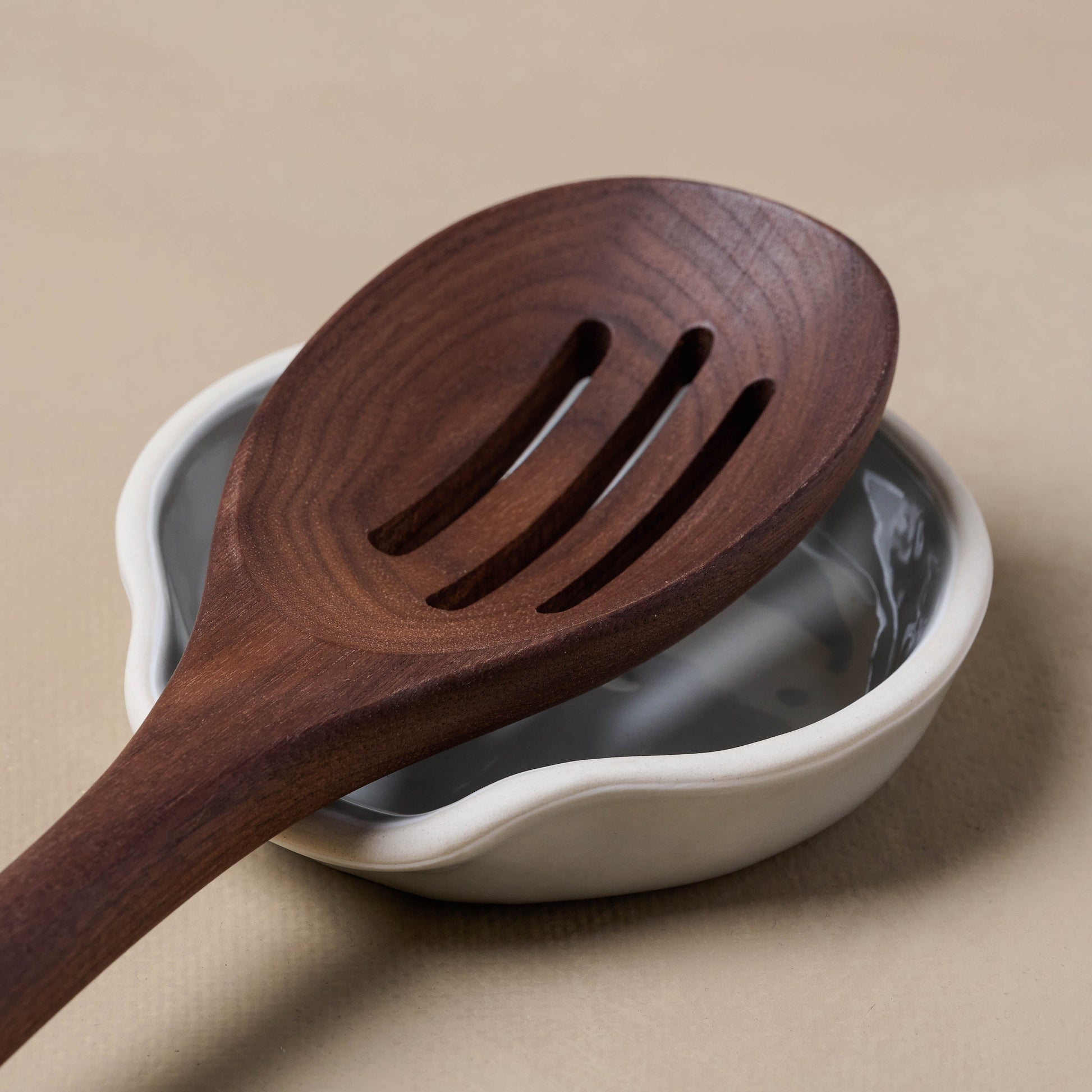 For tasting, stirring, scooping, and the like—this spoon is a handy companion in the kitchen. Crafted from durable walnut, each one is naturally beautiful, heat-resistant, and gentle on cookware.