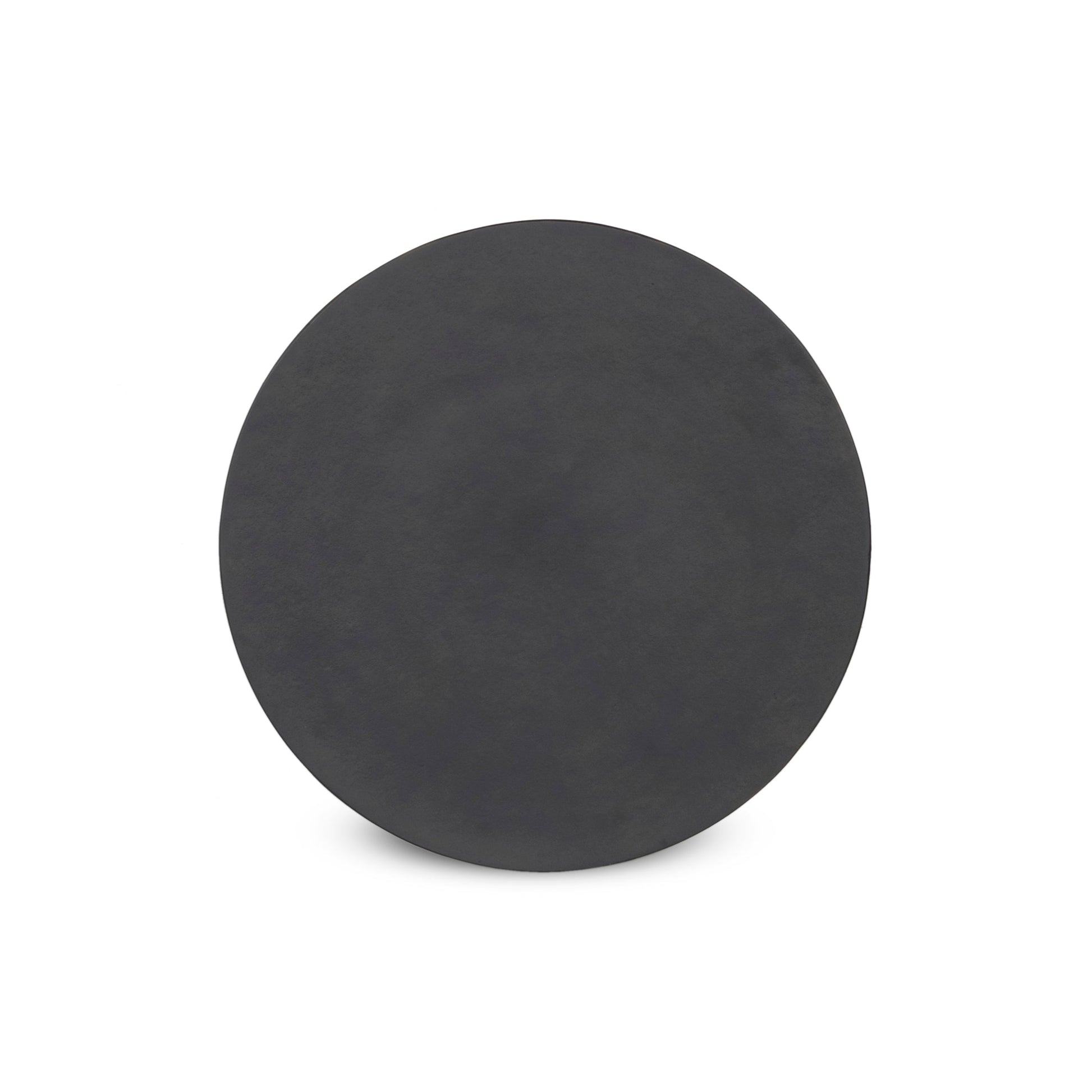 Finished in an antique black, raw aluminum, the Mira End Table features a turned, geometric design that brings depth and personality to any space, making even the smallest corners feel intentional. This piece is a beautiful extra surface indoors and out; if styled outside, cover or bring inside during inclement weather and when not in use.