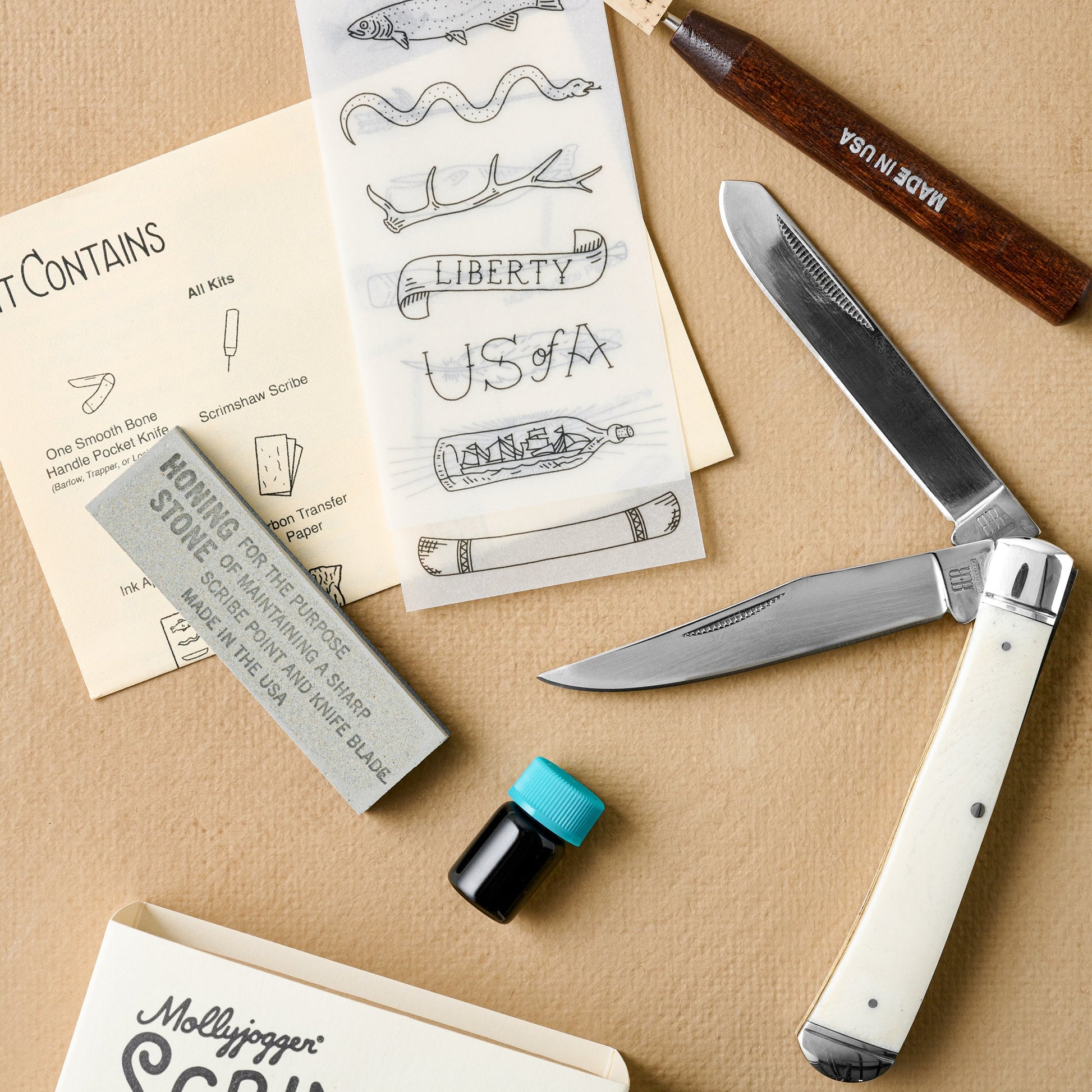 A homage to a lost American art form, this kit contains everything you need to customize your own bone-handled knife. Whether it be a sporting scene, a phrase you live by, or the initials of a loved one, this kit walks you through every step of honing the age-old craft, Scrimshaw.