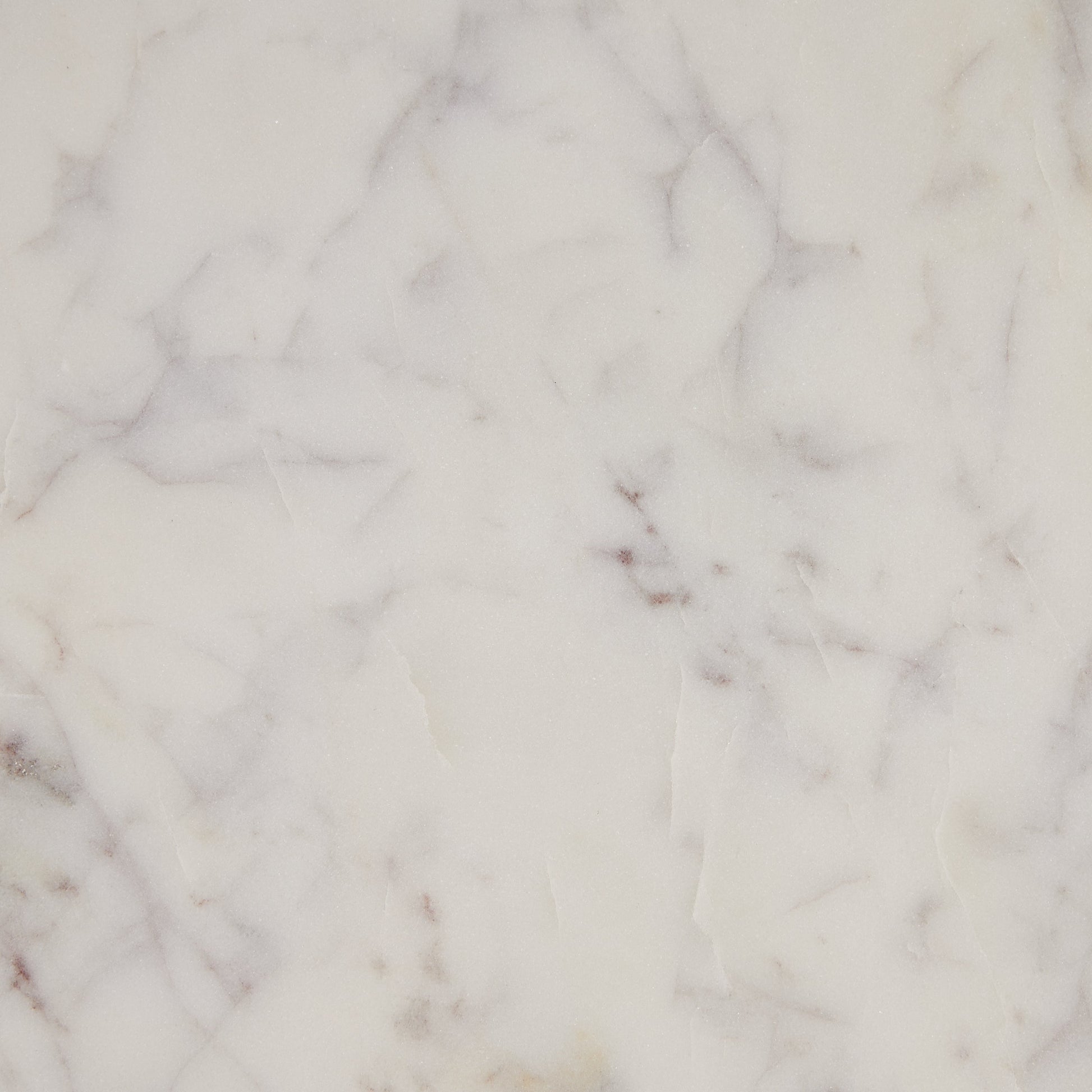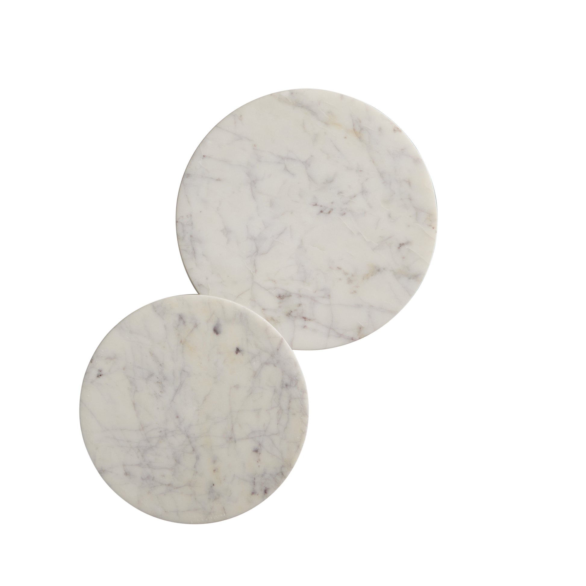 Beautifully veined white marble brings a timeless, polished look to a set of nesting tables with staggered heights.