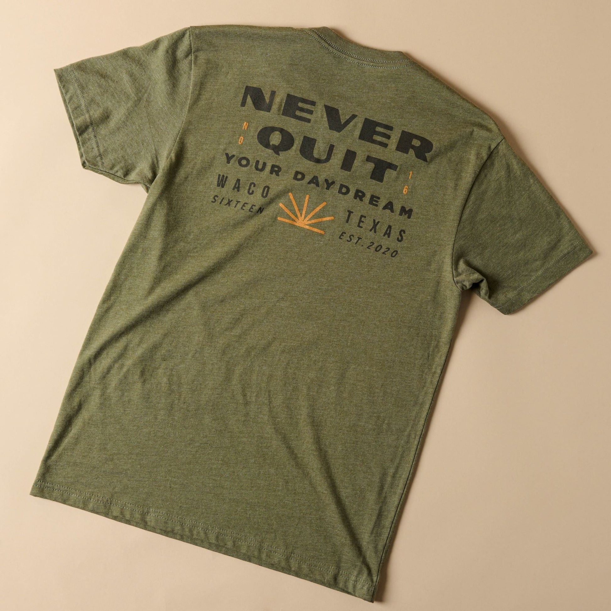 This tee was made for the dreamers, doers, and hard workers. Equal parts aspirational and inspirational, it features the words “Never quit your daydream” on the back and a badge with the word “grit” on the front left chest.