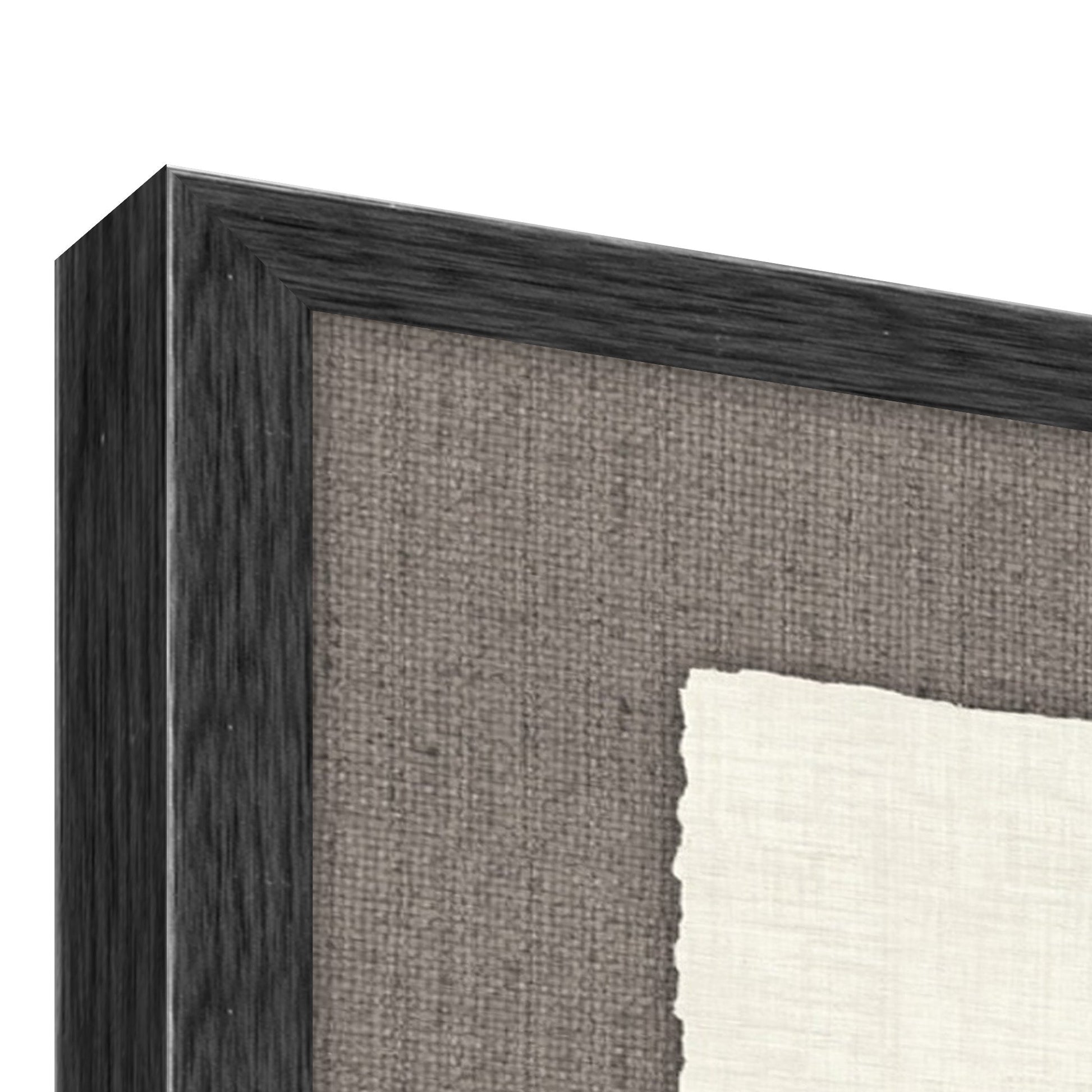 Geometric pencil lines depict one of the Neo-gothic stone towers and cable lines of New York’s iconic Brooklyn Bridge. Depicted on deckled paper, this piece is floated on a hand-wrapped fabric mat and finished with a charcoal grey wooden frame.