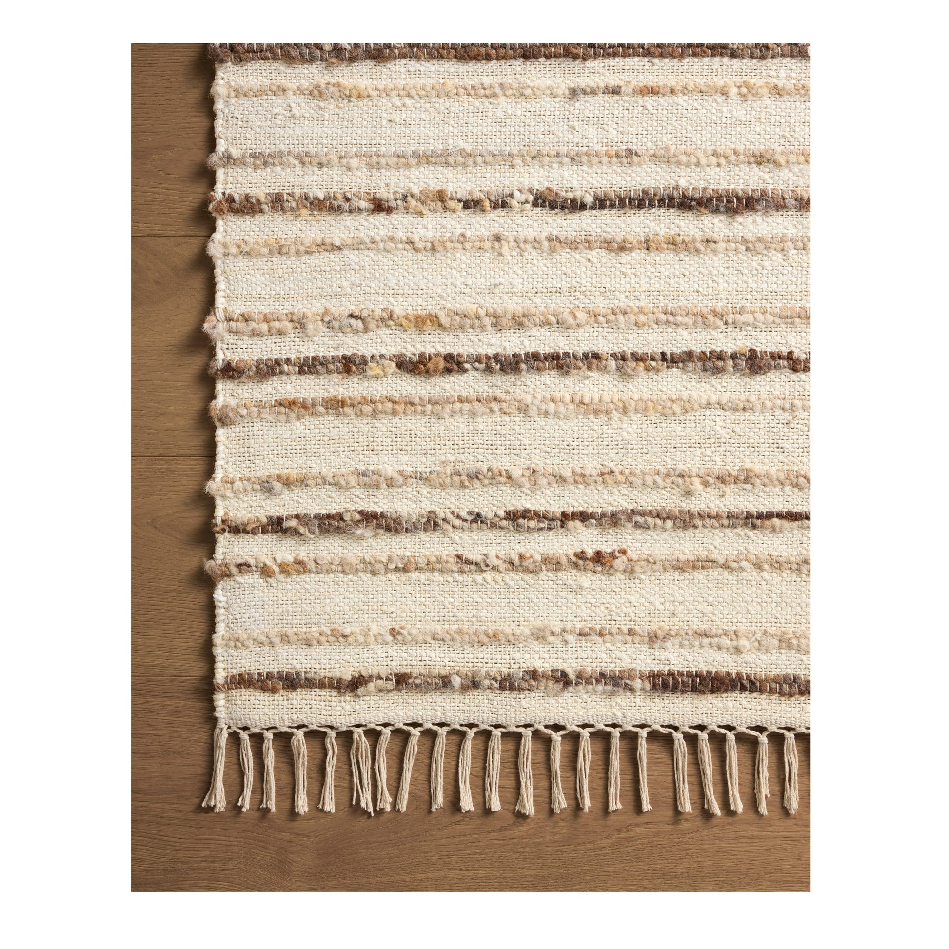 The Nico Collection by Joanna Gaines x Loloi is a dynamic jute rug with raised, alternating lines of wool and cotton, finished with playful fringe. Neutral, undyed tones give the rug an organic modern feel that can ground living rooms, bedrooms, dining rooms, and more. Hand-loomed of jute, cotton, and wool in India and GoodWeave-certified, ensuring our commitment to ethical production and the support of weavers’ communities.