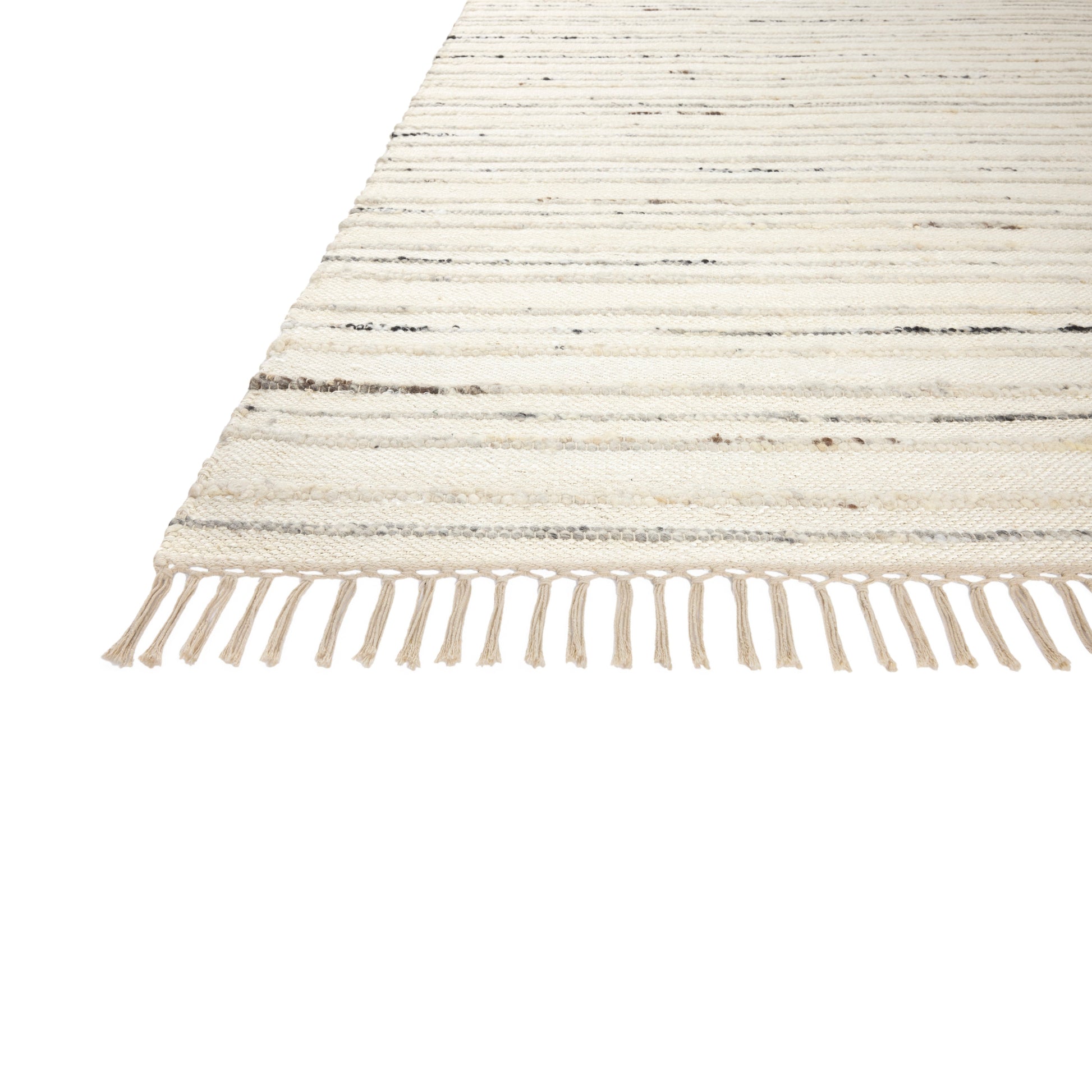 The Nico Collection by Joanna Gaines x Loloi is a dynamic jute rug with raised, alternating lines of wool and cotton, finished with playful fringe. Neutral, undyed tones give the rug an organic modern feel that can ground living rooms, bedrooms, dining rooms, and more. Hand-loomed of jute, cotton, and wool in India and GoodWeave-certified, ensuring our commitment to ethical production and the support of weavers’ communities.