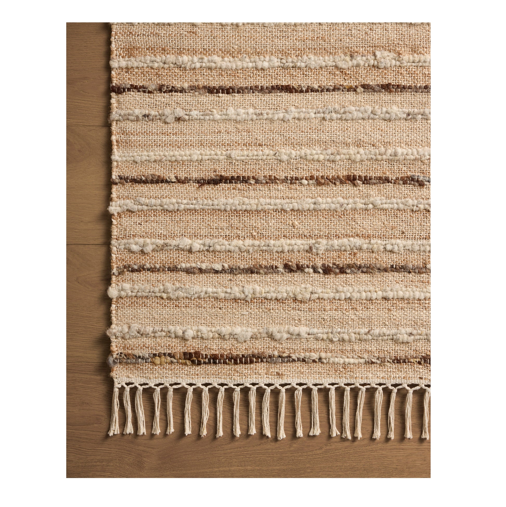 The Nico Collection by Joanna Gaines x Loloi is a dynamic jute rug with raised, alternating lines of wool and cotton, finished with playful fringe. Neutral, undyed tones give the rug an organic modern feel that can ground living rooms, bedrooms, dining rooms, and more. Hand-loomed of jute, cotton, and wool in India and GoodWeave-certified, ensuring our commitment to ethical production and the support of weavers’ communities.