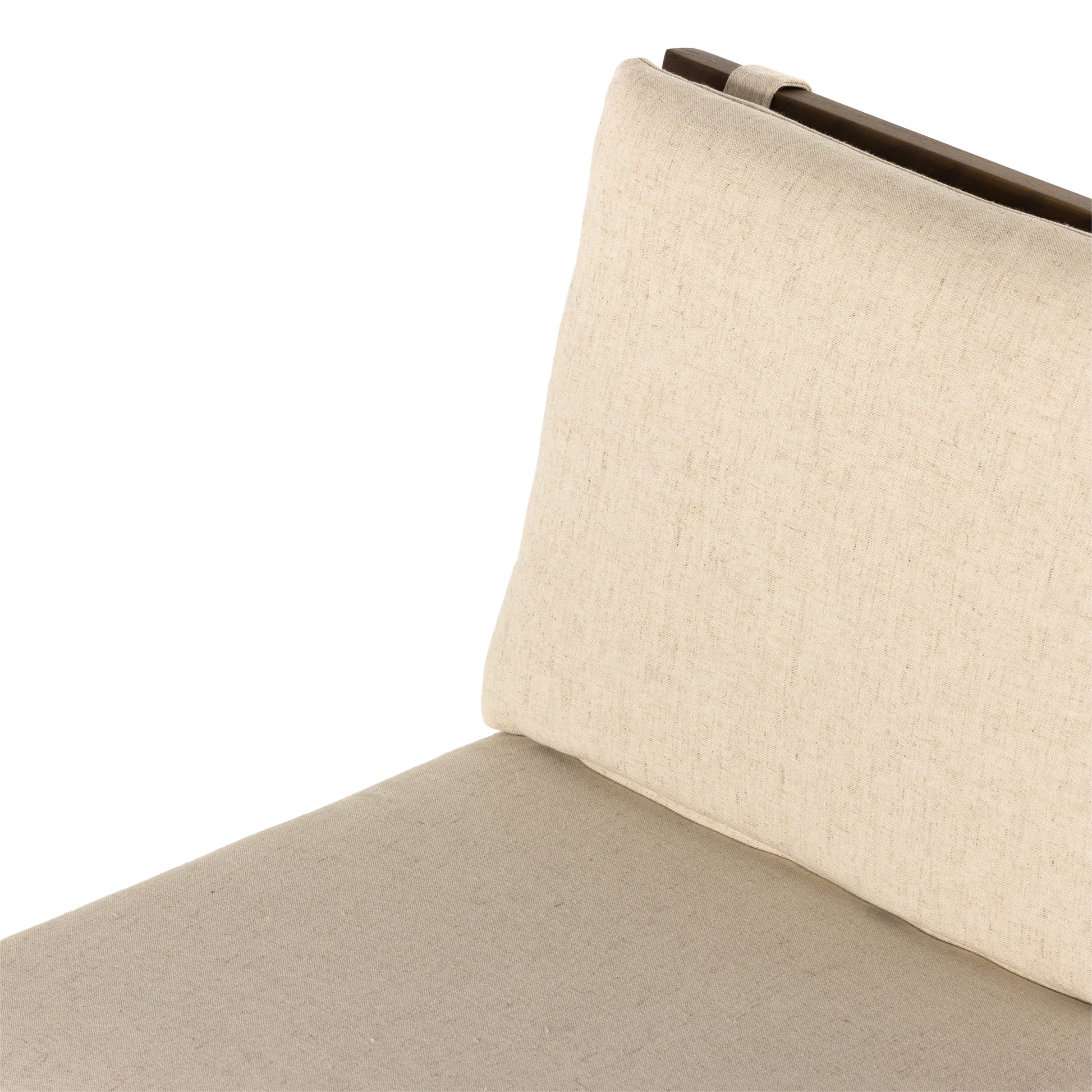 Mixed materials with a clean finish give the Noah Dining Chair a versatile and modern aesthetic. Its slim iron frame pairs with a floating ladder back made of amber-finished oak and your choice of faux leather or linen blend cushioned seating.