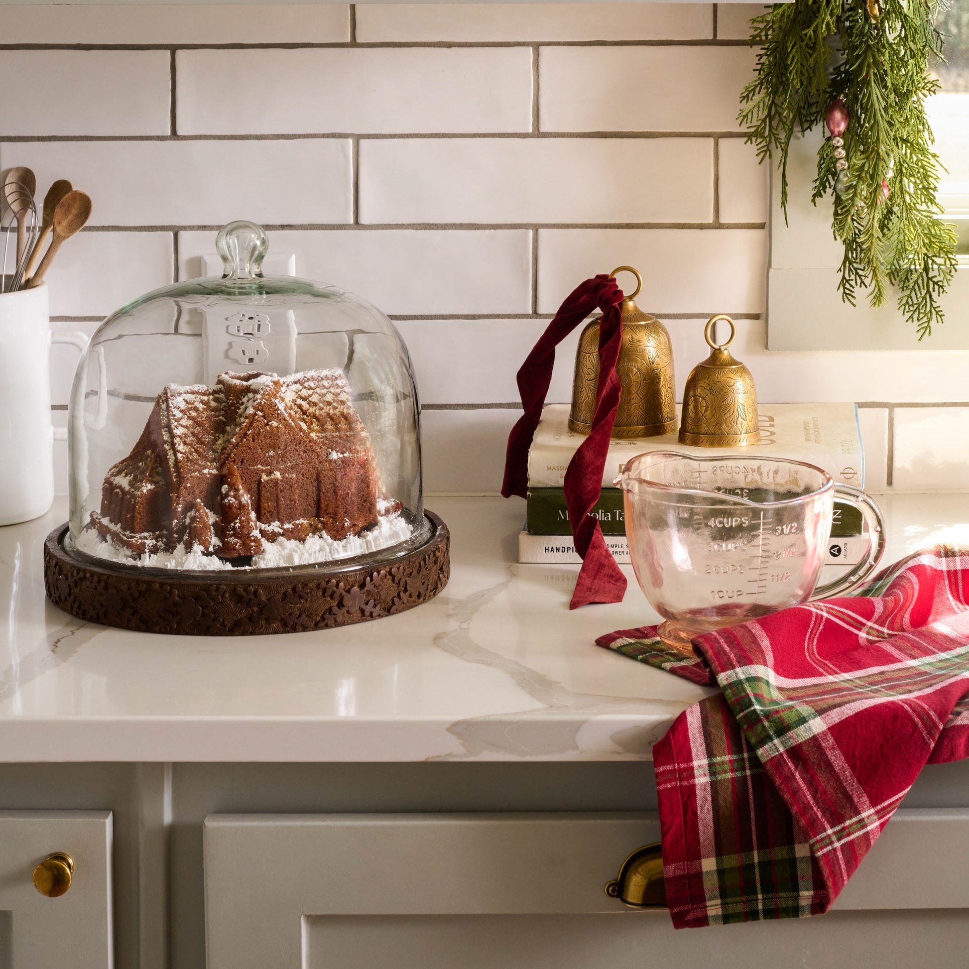 Precisely pretty, this glass measuring cup features a sturdy handle and spout for easy pouring. With capacity to hold up to four cups and easy-to-read measure marks, this versatile measuring tool is ideal to have on hand for any baking day.