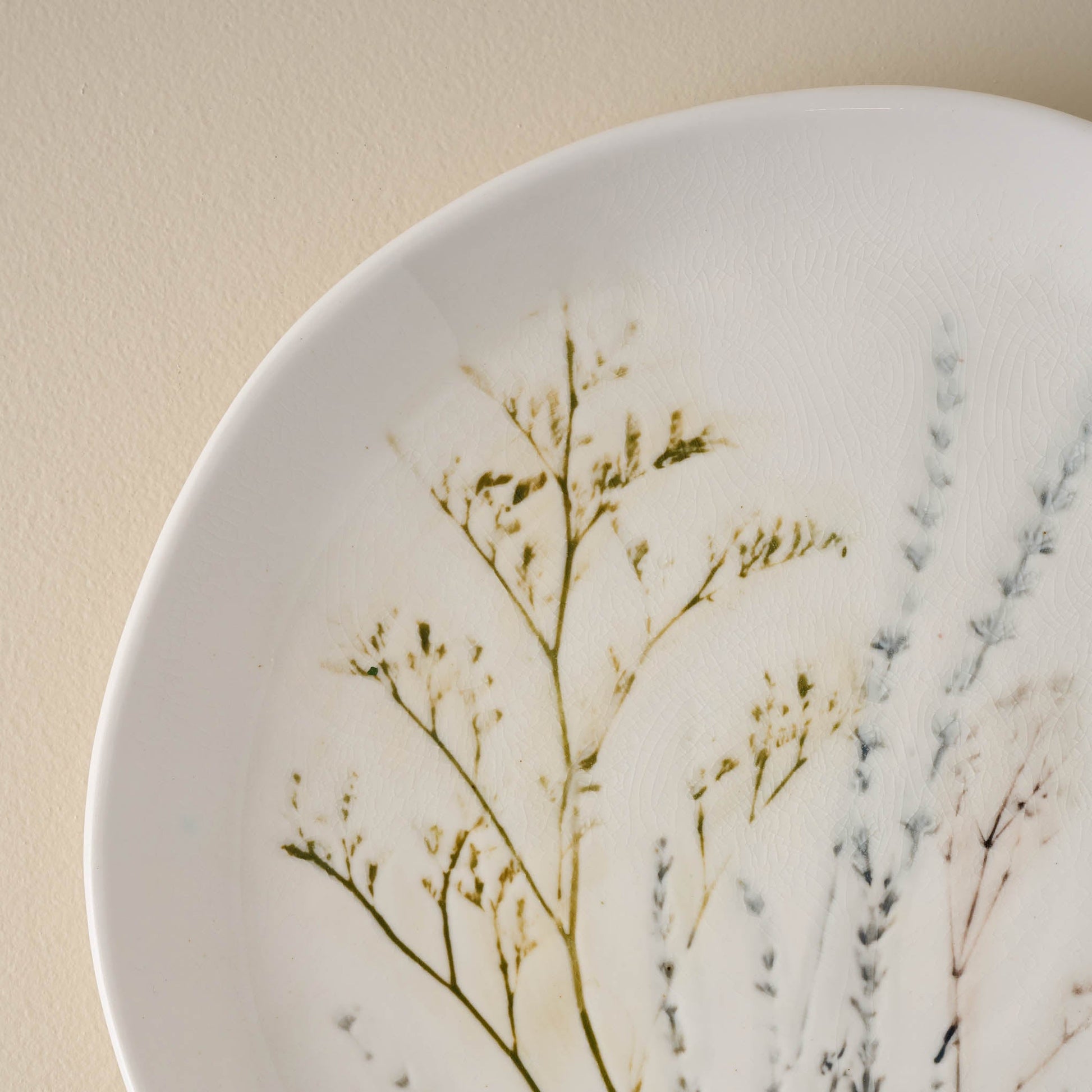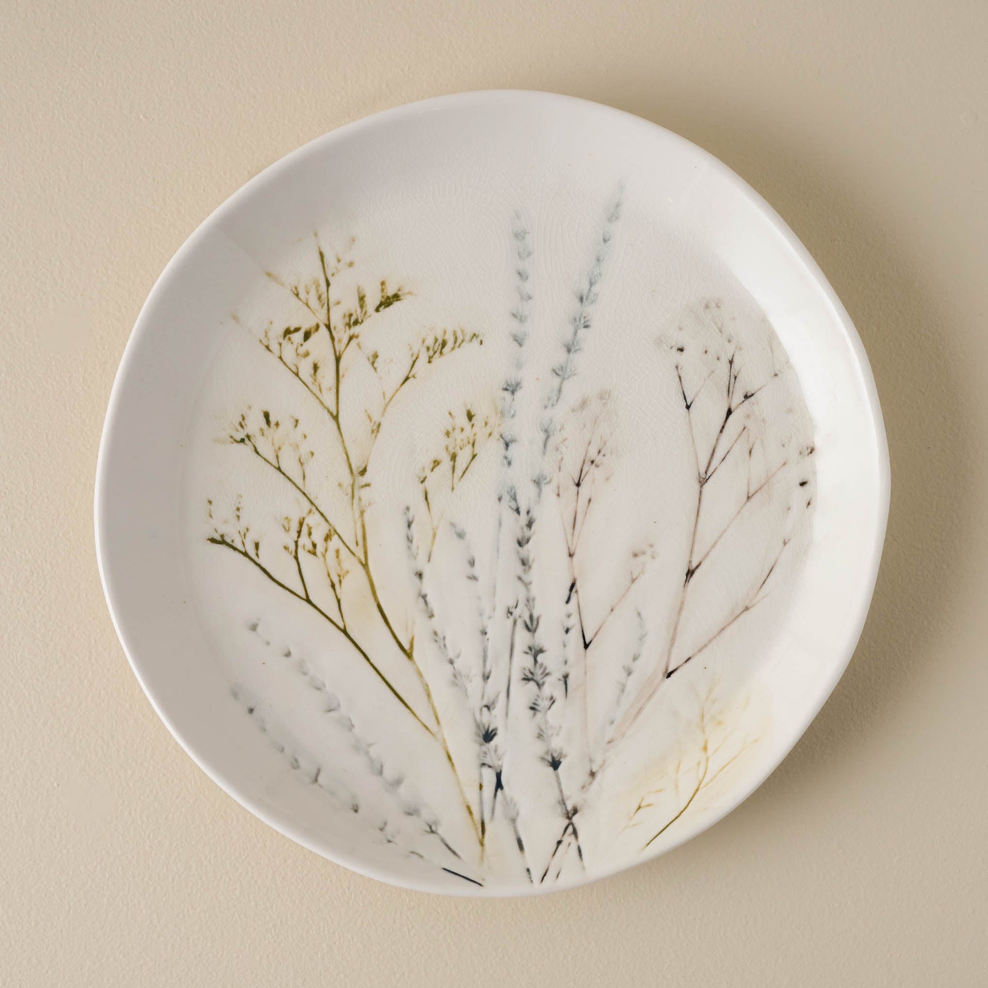 A whimsical addition to the table, our Pressed Floral Plate features the look of tiny wildflower blooms encapsulated in the neutral glazed clay. Ideally sized for meals or salads, this plate can be paired with our Pressed Floral Ceramic Pitcher and Pressed Floral Ceramic Platter for a matching set.