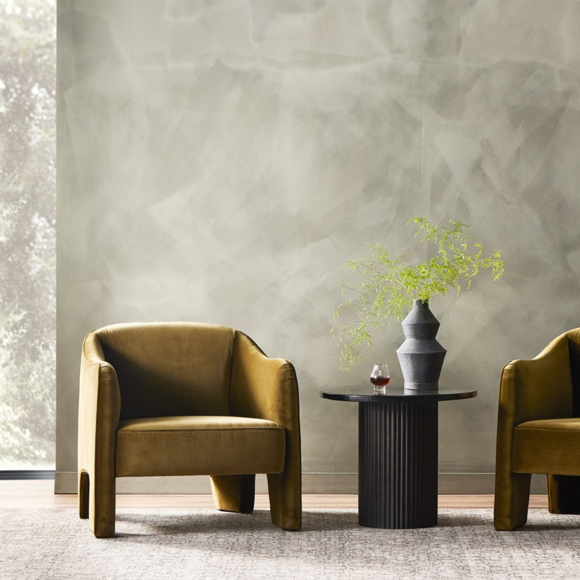 Shape-driven from top to bottom, this modern accent chair is tightly upholstered in a smooth cotton velvet fabric. Subtle highs and lows throughout the fabric change in appearance depending on the direction of the fabric's nap and the lighting in the room, bringing movement to the entire piece. S-spring construction ensures a supportive sit, while side cutouts catch the eye.
